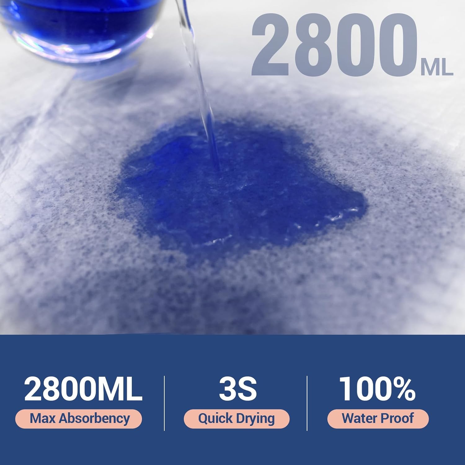 • 3XL For Bed Protection: Our bed pads disposable adult in size 40" x 36"(approx 101 x 91 cm) are bigger and thicker than most incontinence underpads. It provides a larger absorption area and stronger absorption capacity, effectively preventing liquid leakage from the surrounding