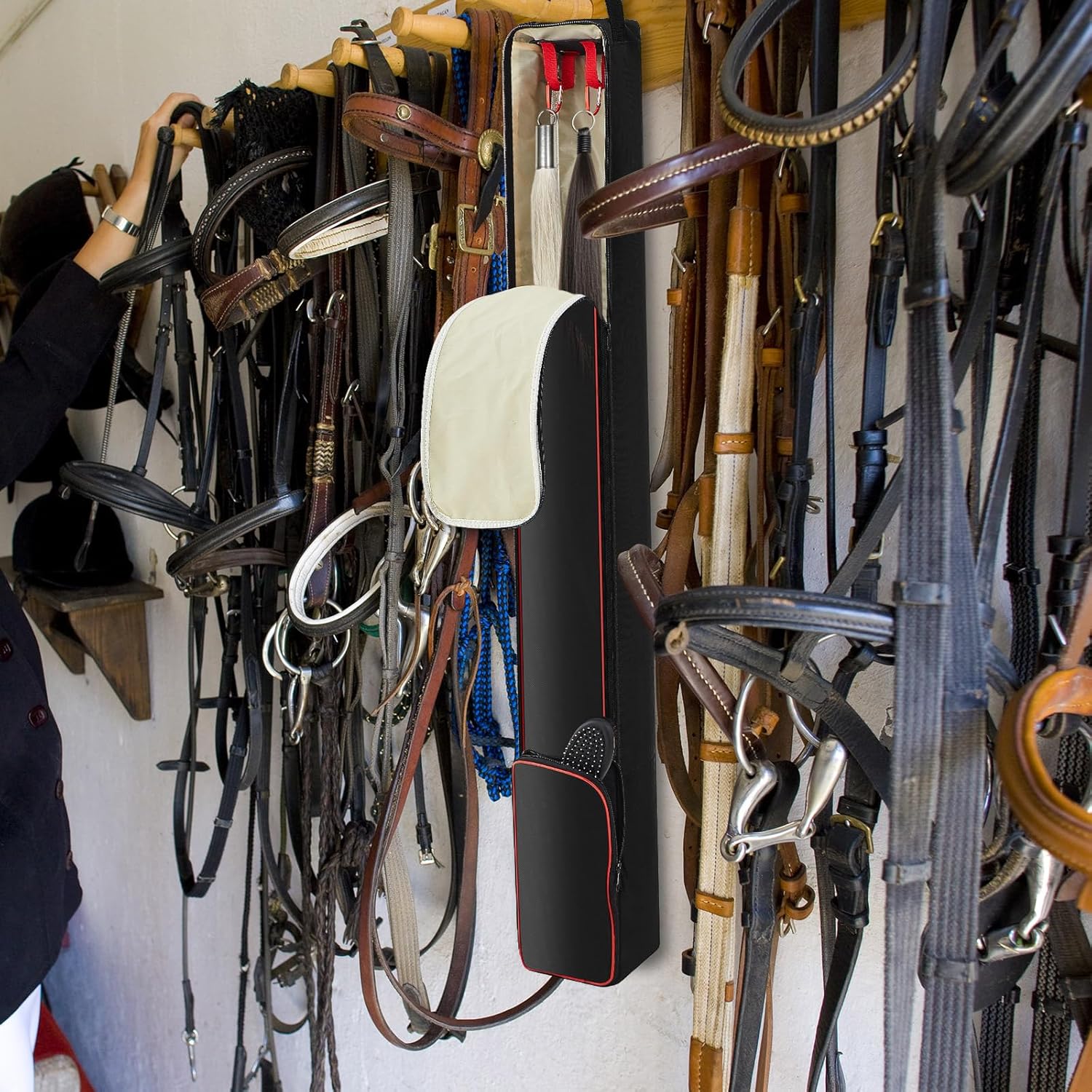 • Quality Material: our horse tail bag is made of quality 600D Oxford cloth; The fabric prevents any odour build up and the reinforced top offers robust support, helping to prevent sagging; To facilitate easy storage, the bag comes equipped with double hooks