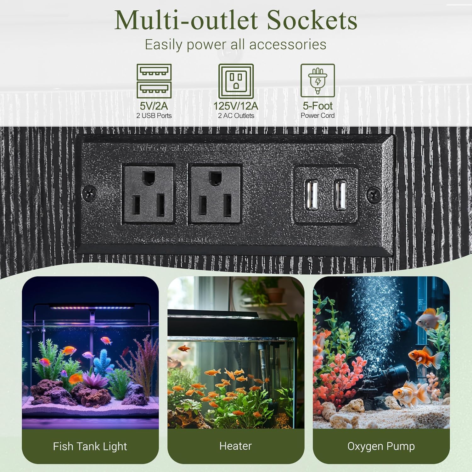• 【Bulit in Power Outlets】The 20-29 gallon aquarium stand comes integrated with 2 AC and 2 USB outlets, optimally catering to all your aquarium & reptile device power needs
