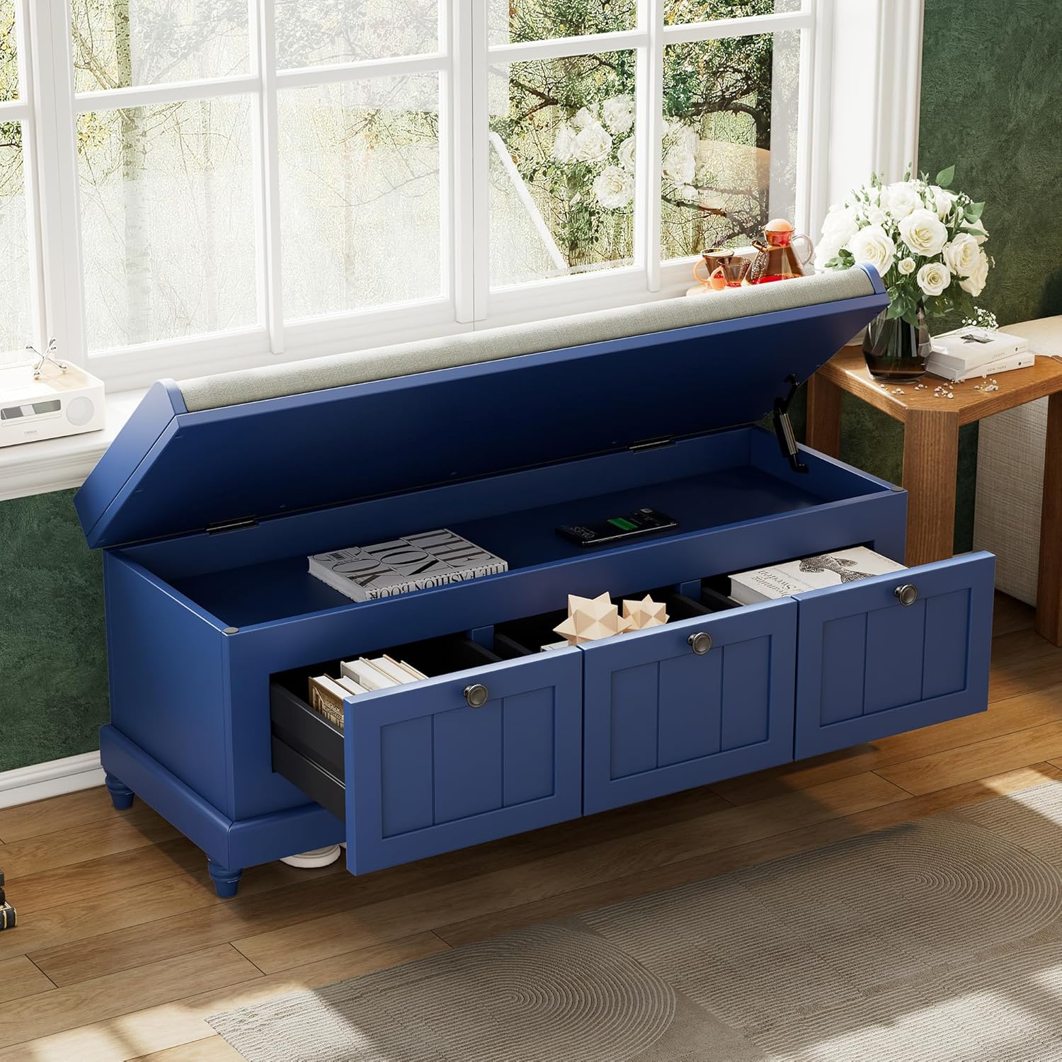 • Ample Storage Space: Three drawers provide plenty of room for organizing toys, shoes, or daily essentials, while the hidden storage compartment under the cushioned top is perfect for books, thin blankets, or other items. Functional and stylish for entryway benches, bedrooms, or living rooms.