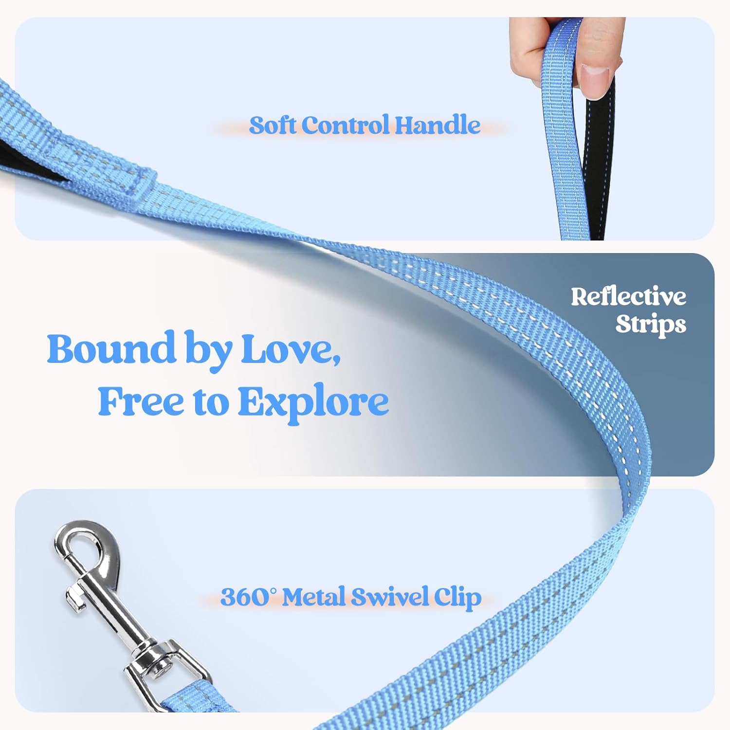 • Dog Harness with Leash Set: The color-matching harness and leash with reflective bands make it fashion and visible for pet outing. The leash is 5.12ft in length, with an anti-tangling clip and a palm-friendly handle
