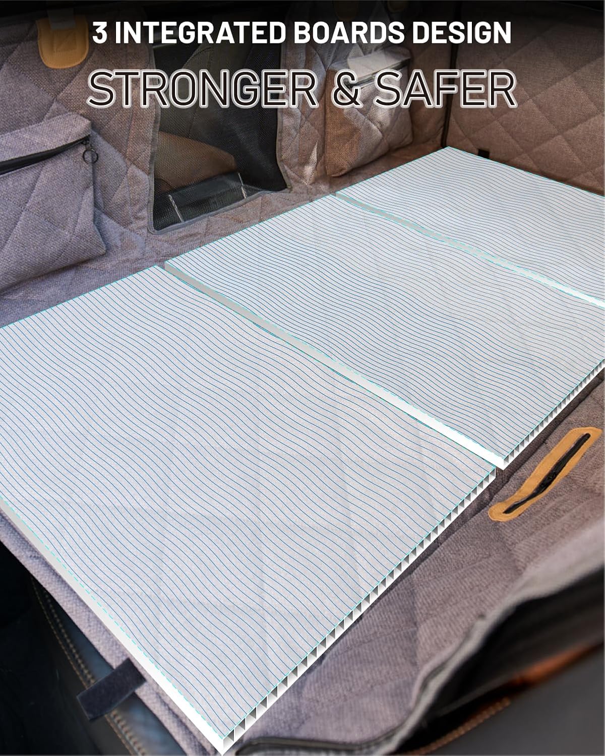 • Waterproof, Scratch-resistant & Non-slip: Constructed with 10-layer materials including PVC coating, TPU and 210T polyester, this dog back seat extender resists spills and wear. The 8mm high-density sponge and S-patterned board ensure stability, while the polyester linen-textured surface provides grip and scratch resistance.