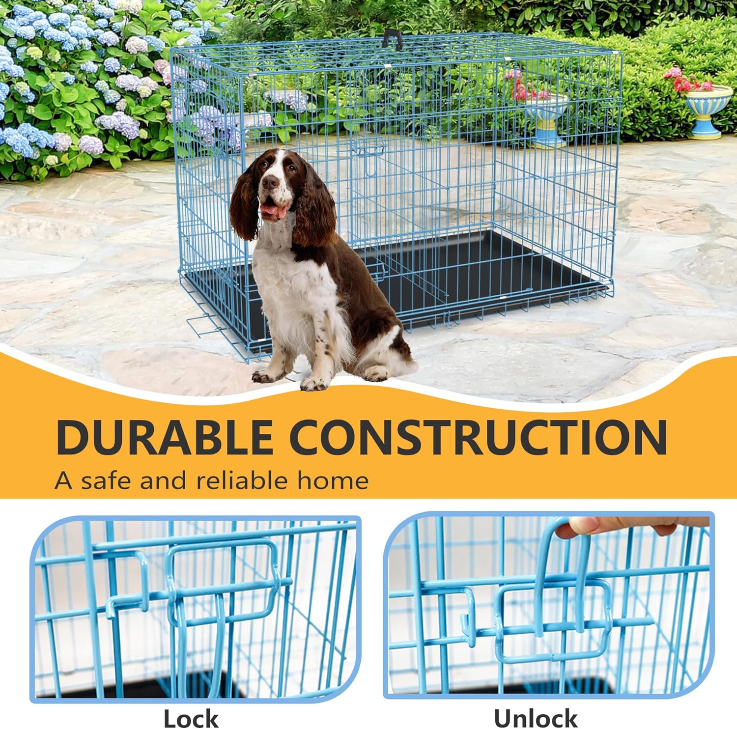 • 【Durable Construction】Our dog crate is made of sturdy, rust-resistant metal wire, making it durable and able to handle energetic puppies. Its durable design makes it resistant to deterioration, giving it a dependable option for extended usage.Dog cage dog crate dog kennel