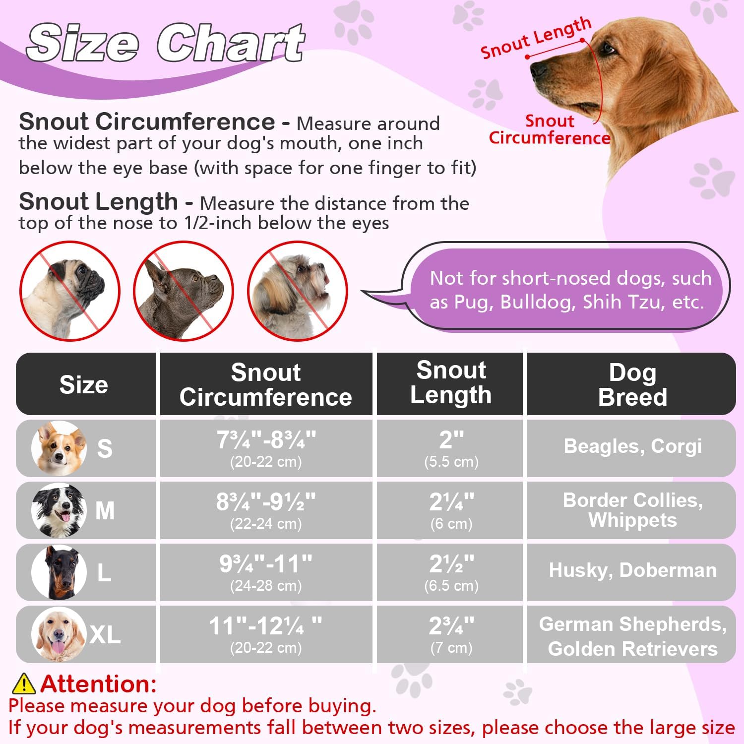 - ATTENTION: Please help your dog get used to the muzzles by rewarding treats repeatedly. And remember that the muzzle should not be used for punishment.