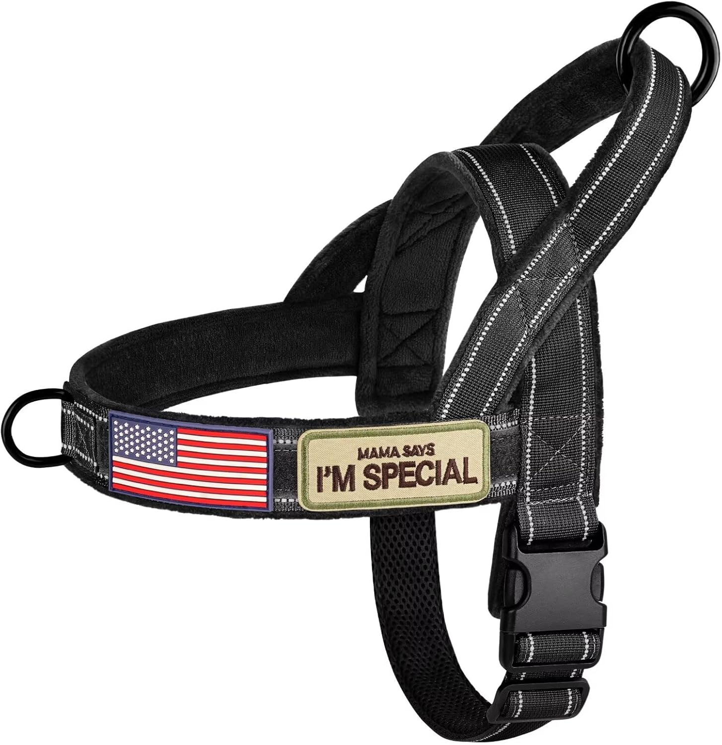• Swappable Patches: Newly Forestpaw tactical dog harness has a long velcro area,paired with 3 patches, you can put the patches "MAMA SAY I'M SPECIAL" or the flag on it to make your dog more eye-catching and handsome when outdoor training