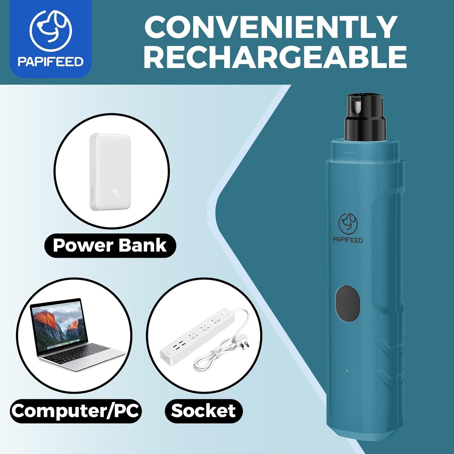 - 🐾【TYPE-C CHARGING, MORE EFFICIENT POLISHING】"The Type-C interface is compatible with mobile phone chargers, so you can charge it whenever you want, and say goodbye to the cumbersome replacement of traditional batteries. Using the PAPIFEED dog nail grinder, you can experience the convenience brought by continuous operation time and ultra-long standby time, providing an uninterrupted beauty process and flexible nail care."