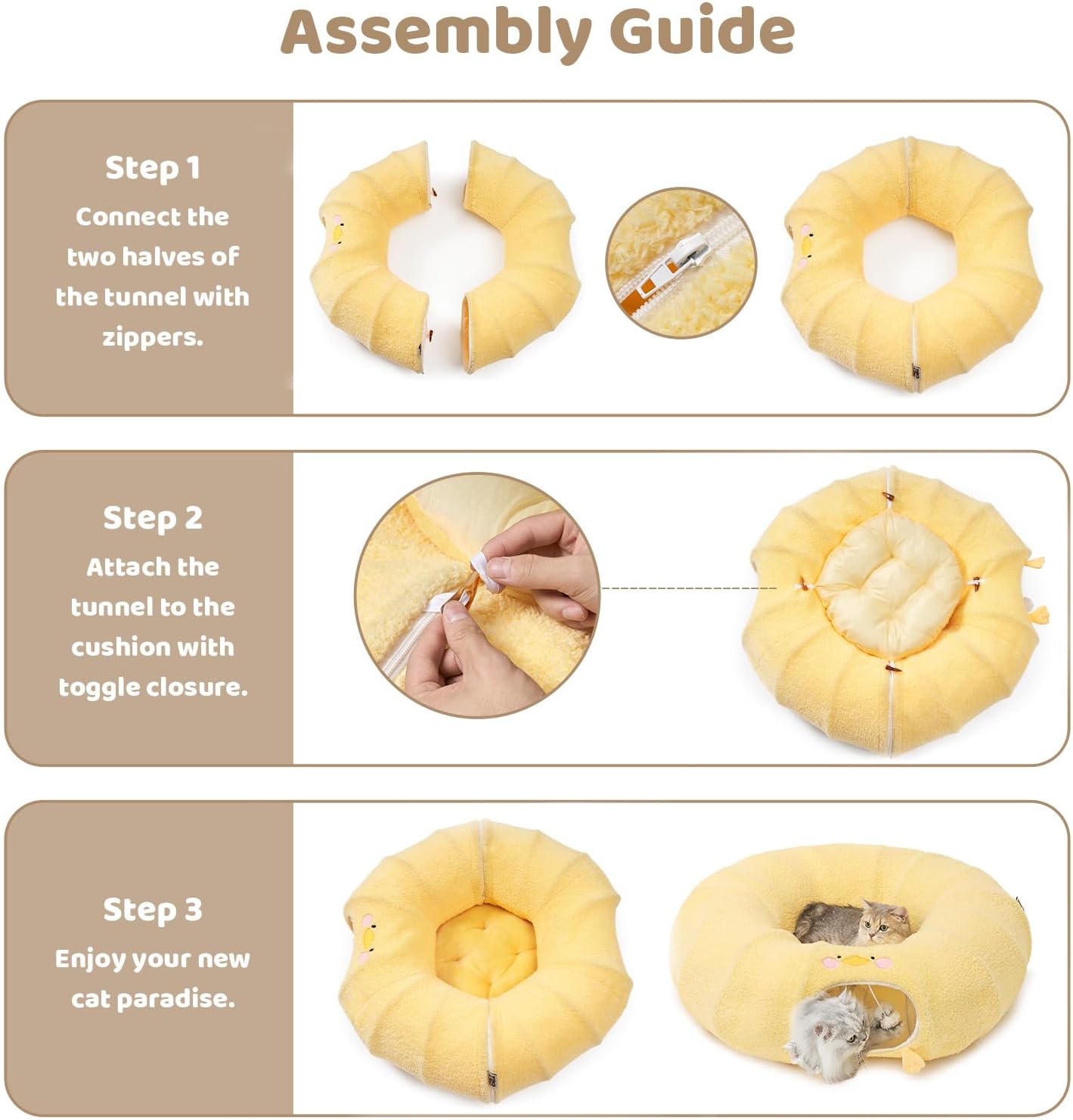 • Easy to Clean: With your convenience in mind, EHEYCIGA cat tunnel bed is effortless to assemble and quick to store. The removable cushion is machine washable.