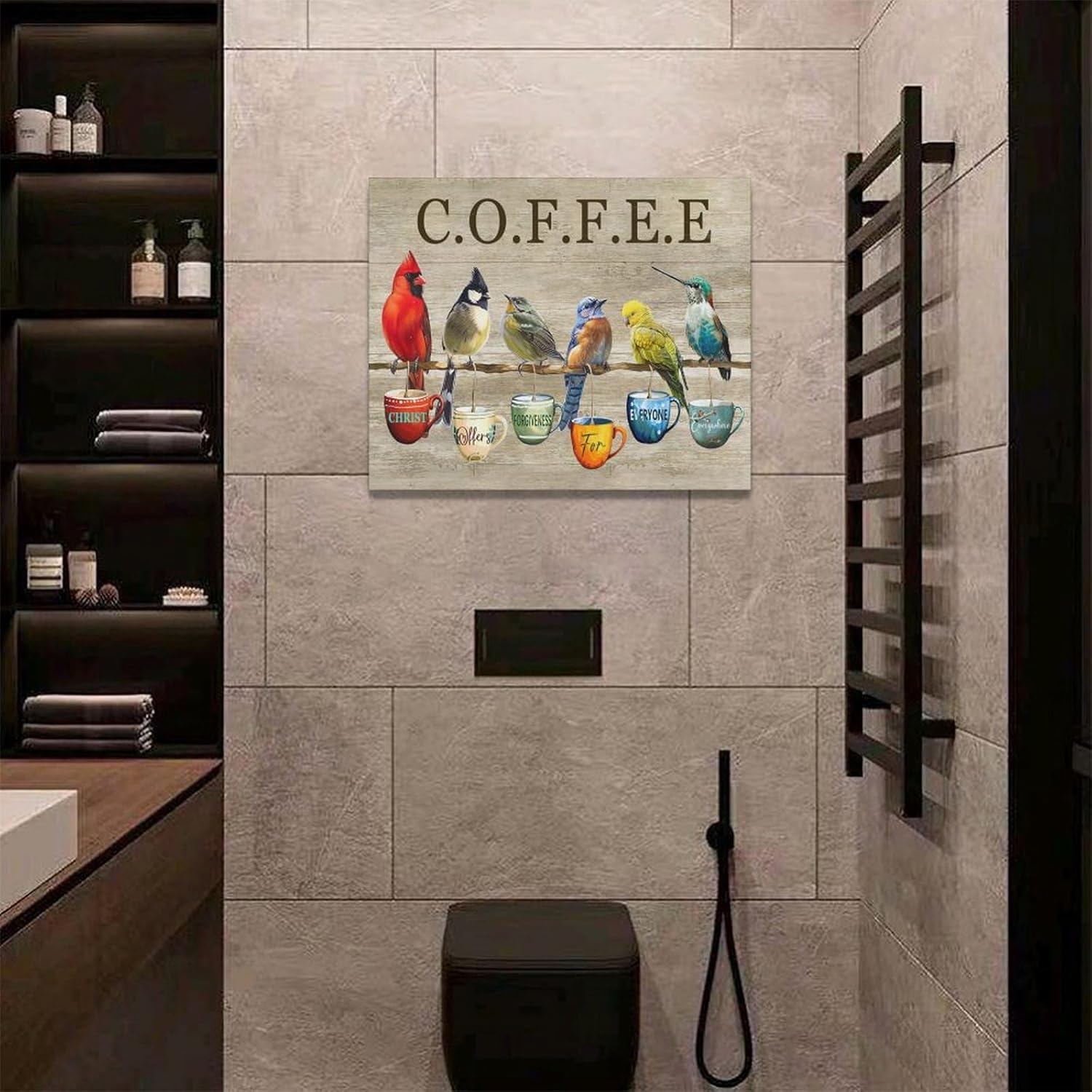 Rustic Bird Coffee Wall Art Kitchen Christ Coffee Pictures Wall Decor Farmhouse Cardinal Hummingbird Canvas Print Painting Artwork for Coffee Bar Living Room Bedroom 16"x20"