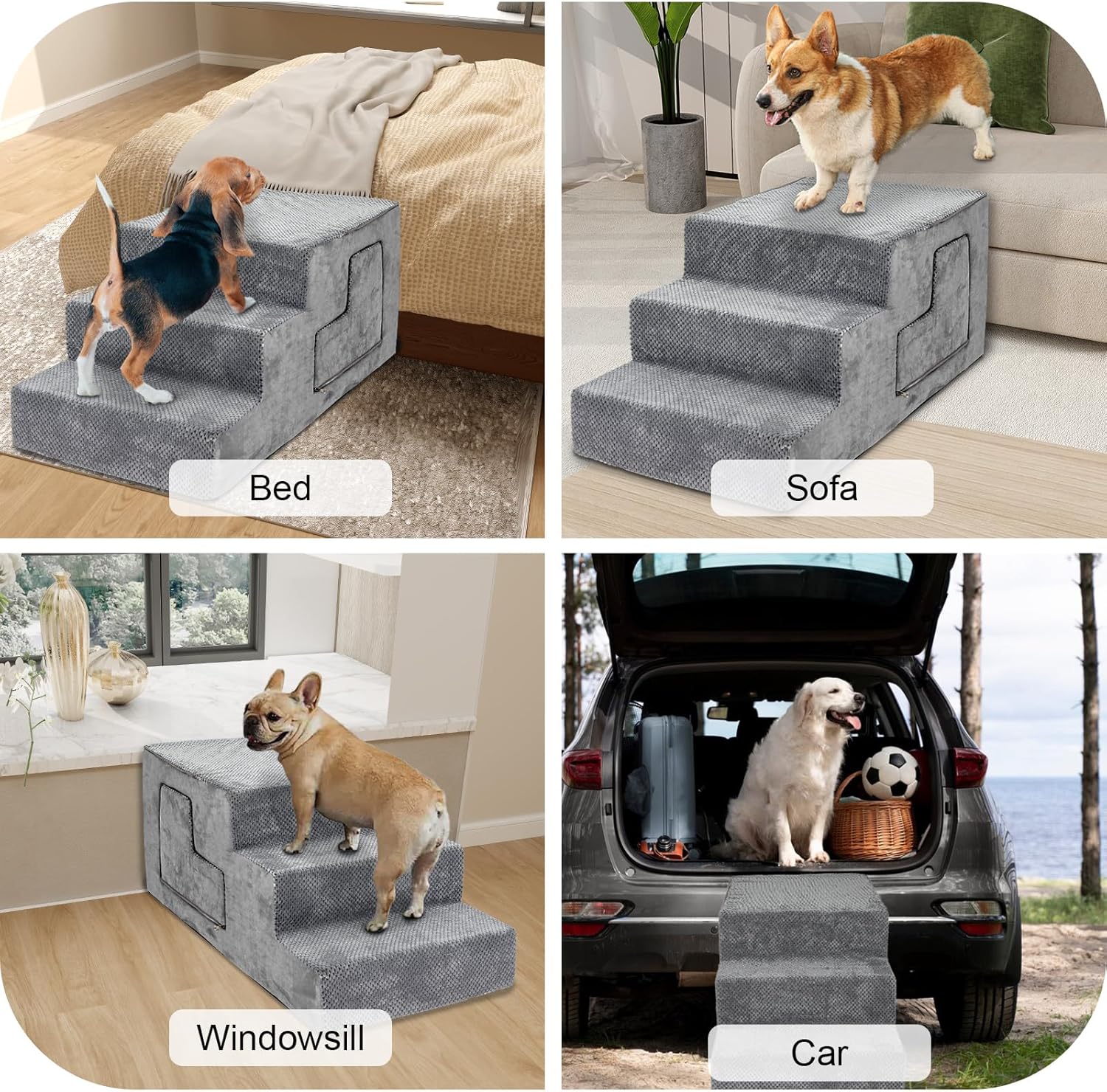 • EASY TO CLEAN: The cover of dog steps can be removed for machine or hand washed to give your pets a fresh and cozy stair. Please note that the inner foam is not washable