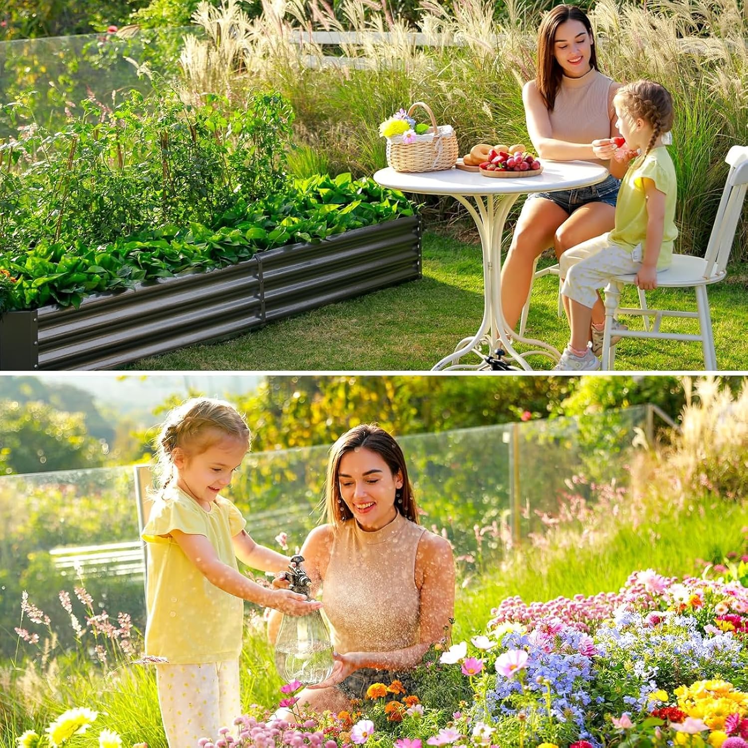 • Stable and Solid Construction: Double card frames on the two sides of the sheet make the raised garden kits more durable and stable, and 4 reinforcing rods make the whole raised garden bed more stable. Never worry about its distortion or collapse and it presents a much more beautiful design.