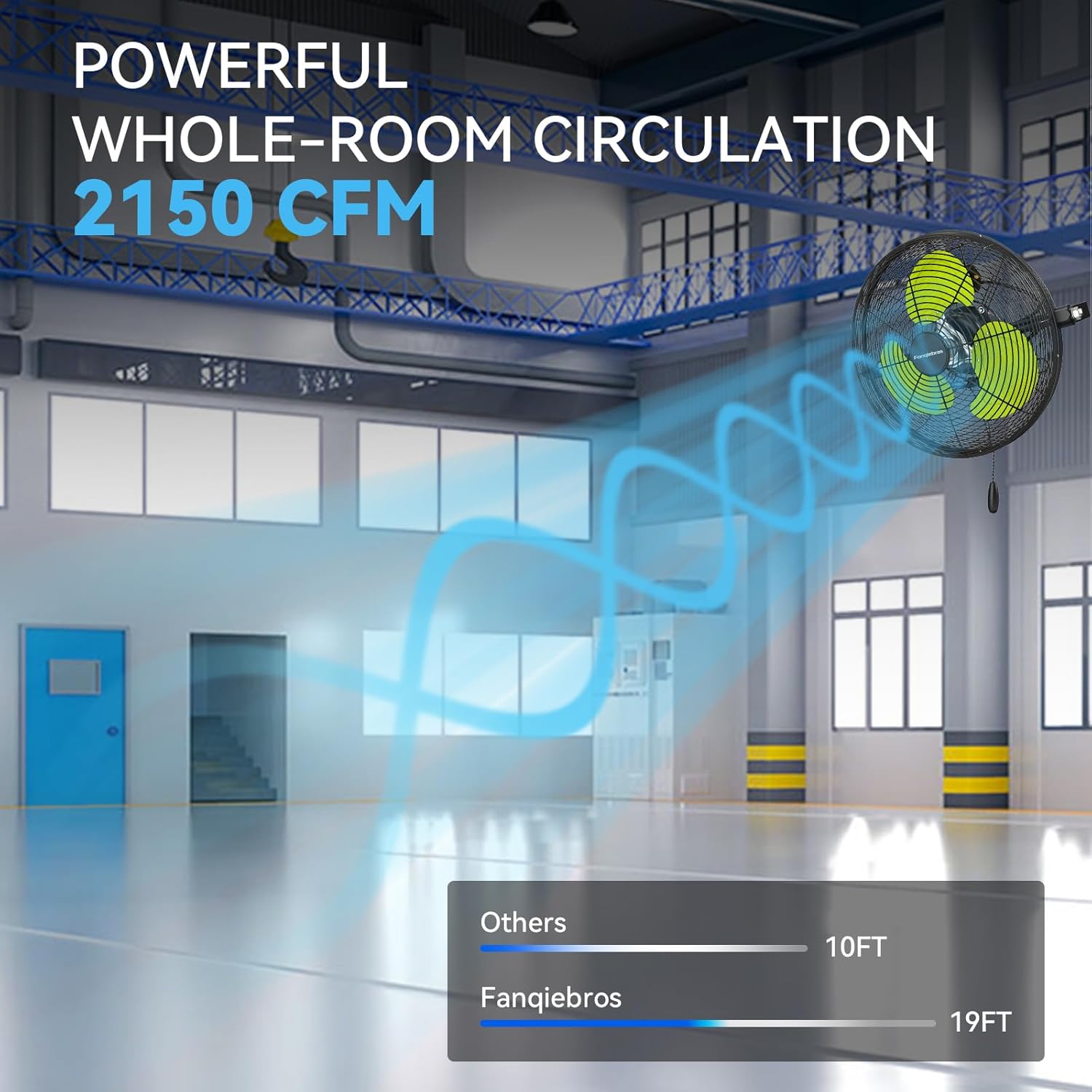 - ๐๐ข๐ ๐ก ๐๐๐ฅ๐จ๐๐ข๐ญ๐ฒ ๐๐ข๐ซ ๐ ๐ฅ๐จ๐ฐ - Equipped with 3 adjustable wind speeds, low (1700CFM), medium (2100CFM) and high (2500 CFM), this wall fan utilizes the raw power of the pure copper motor to provide hurricane-like airflow to meet your garages, shops, covered patios, or anywhere else you need