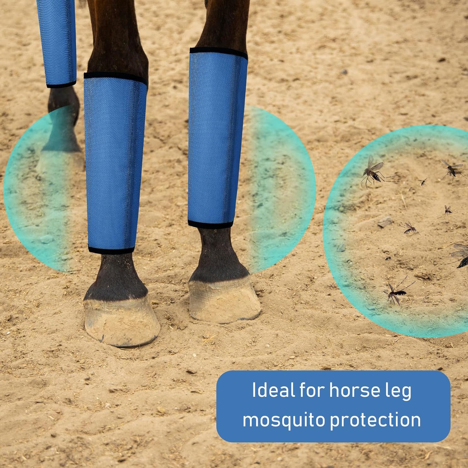 • Effective Protection: Set of 12 blue horse fly boots to keep your horse comfortable and protected from biting insects; Designed to protect your horse's legs from flies, mosquitoes, and other pests that cause irritation and distress