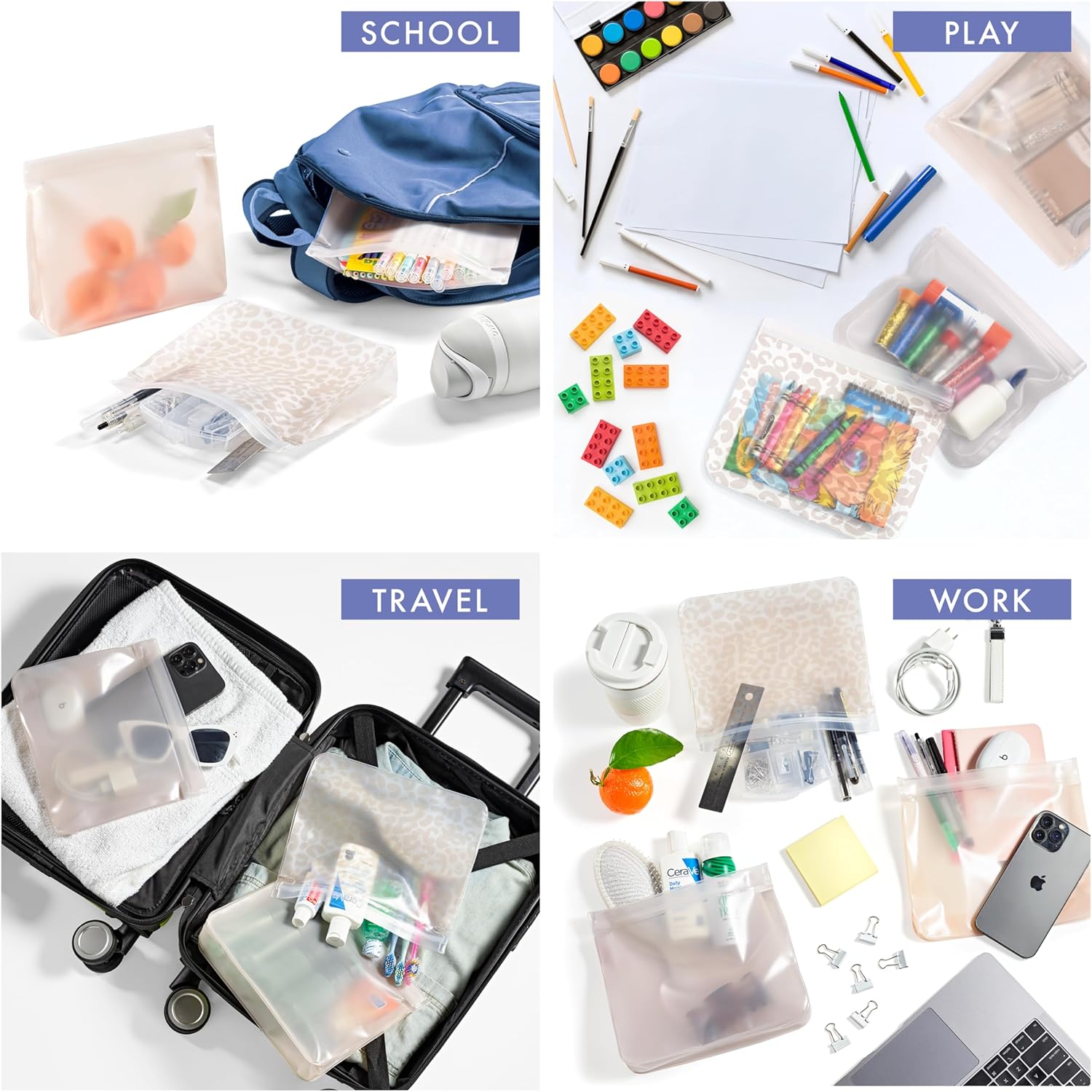 • REUSABLE PEVA BAGS - Set includes 3 reusable storage bags measuring at 8.5” x 2” x 7.5.” Ditch single-use plastic bags, save up to 300 plastic baggies with just one of our reusable bags. Great for storing sandwiches, snacks, & all the small things!