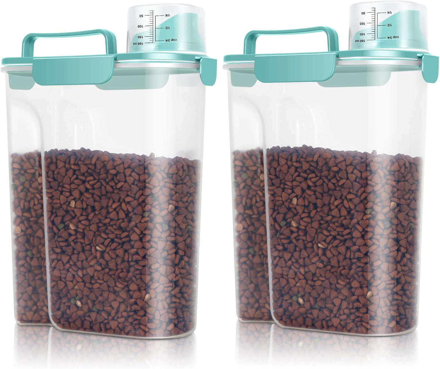 • Large Pet Food Container Set: TBMax dog food storage containers come with two 6-qt bins that each one can hold about a 5 to 7 lbs bag of dry dog food or cat food, which depending on the particles of the pet food. Ideal for storing small pet food like kitten puppy kibble, bird seeds, fish food and more