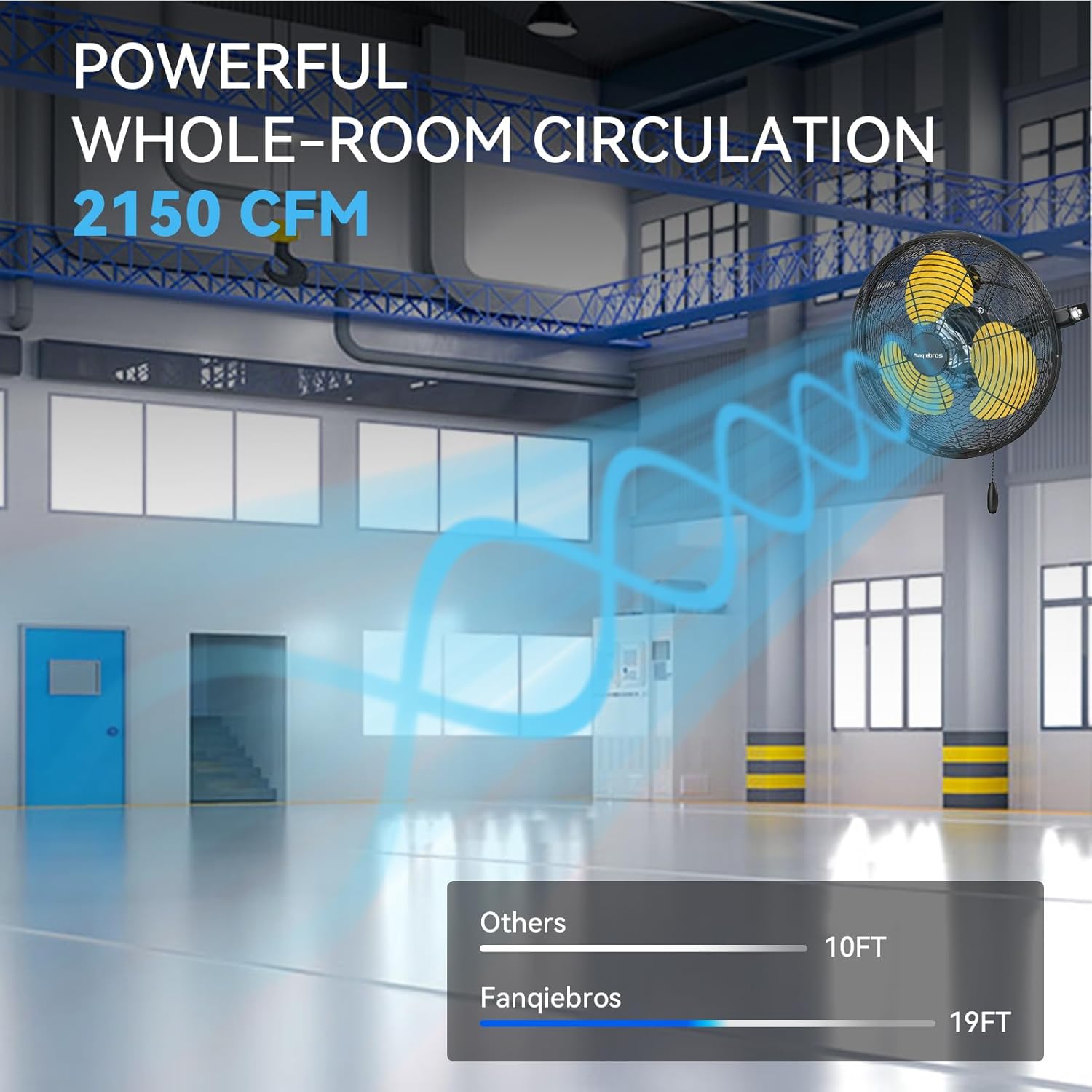 • 𝐇𝐢𝐠𝐡 𝐕𝐞𝐥𝐨𝐜𝐢𝐭𝐲 𝐀𝐢𝐫 𝐅𝐥𝐨𝐰 - Equipped with 3 adjustable wind speeds, low (1700CFM), medium (2100CFM) and high (2500 CFM), this wall fan utilizes the raw power of the pure copper motor to provide hurricane-like airflow to meet your garages, shops, covered patios, or anywhere else you need