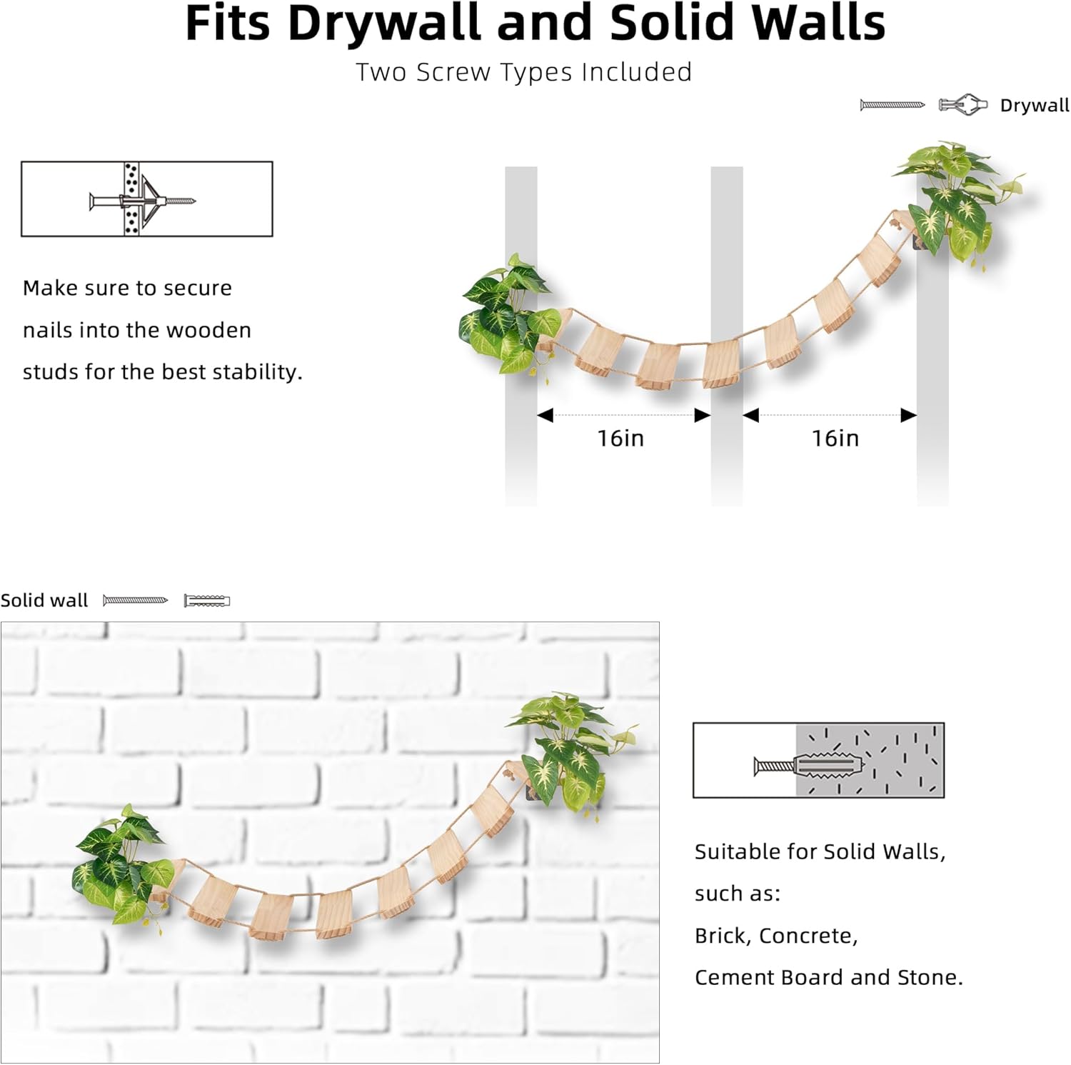• COMPLEMENT YOUR HOME DECOR – Featuring a sleek, neutral design with realistic faux plant accents, our wall-mounted cat bridge not only blends effortlessly into your living space but also adds a touch of nature. It provides your cat with a cozy, elevated perch while enhancing the aesthetic of your home.
