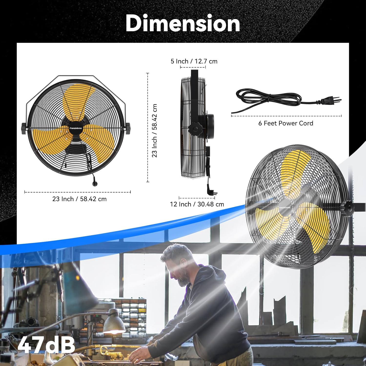• 𝐋𝐨𝐰-𝐍𝐨𝐢𝐬𝐞 𝐃𝐞𝐬𝐢𝐠𝐧 - The heavy-duty wall fan operates at a high speed of 4580 CFM with a noise level of only 60dB, which is lower than the industry standard, creating a quieter gathering or working environment
