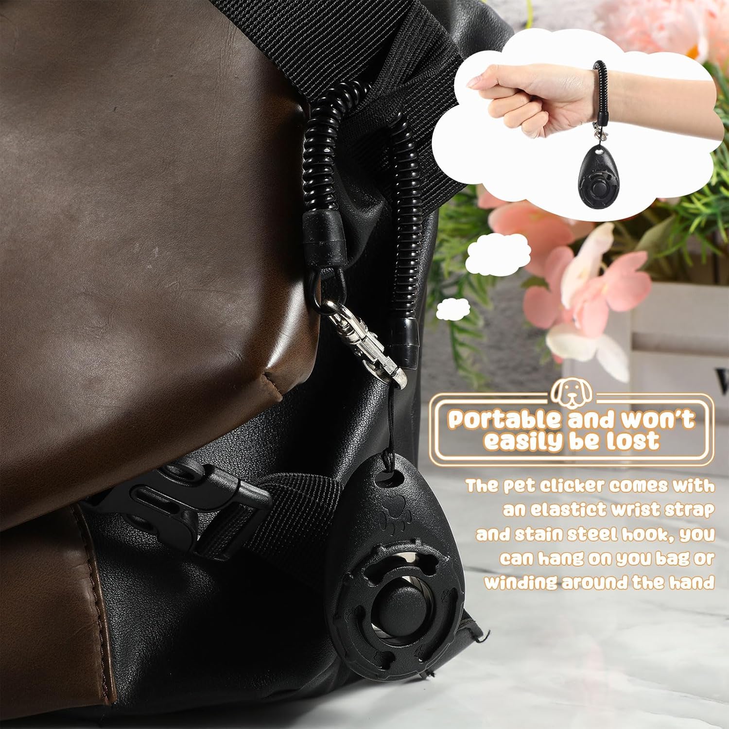 • Easy To Use: The Dog Training Clicker makes it comfortable and secure. It is attached to a keychain ring and elastic bracelet; Wear it on your wrist or hang it up or attach it to your handbag, so you don't drop it and can access easily and quickly; Wrist attachment makes it more comfortable and easier to hold onto, than box clickers when training your pet