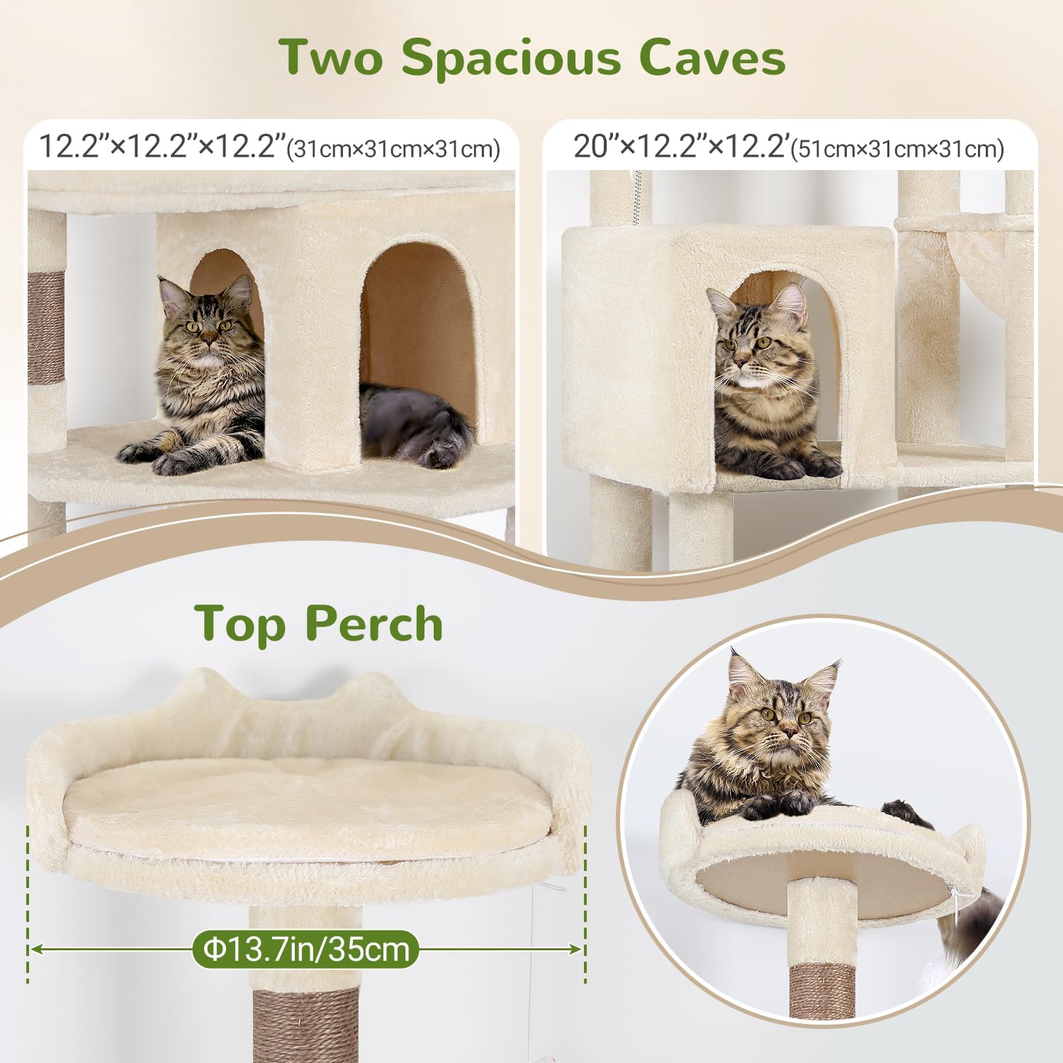 • ENHANCED STURDY STABILITY - The thickened and enlarged base board ensures enhanced sturdy. The unique design ensures the center of gravity is precisely centered, making it difficult for this tall cat tree tower to tip over even during movements by large cats