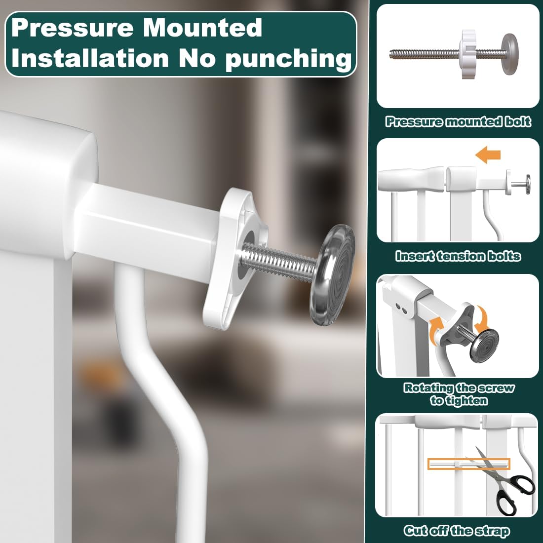• 【GREAT FOR MOST OPENINGS】Our white gate is suitable for different doors! Choose for openings between 25"-76.37". We have different baby gates sizes,it doesn't include all extensions,the extension which you received denpends on your door opening.Whether your dooway is wide or narrow ,you can find the suitable baby gate or pet gate.And our large walk thru gate makes it easier to walk when holding the baby.