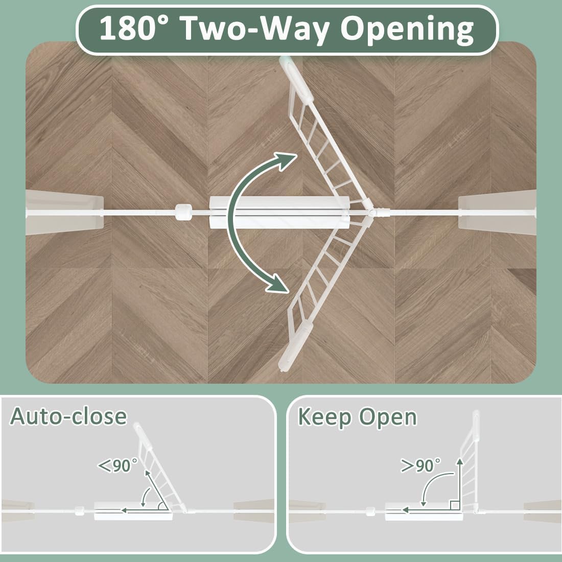 • 【BABY GATE WITH DOOR】 - The door can swing in both directions. Besides,the door of our baby gate has auto-close and auto-lock function. You don't need to worry about forgetting to close the door,it will auto-close when opens less than 90 degrees,You can open the door just with one hand.