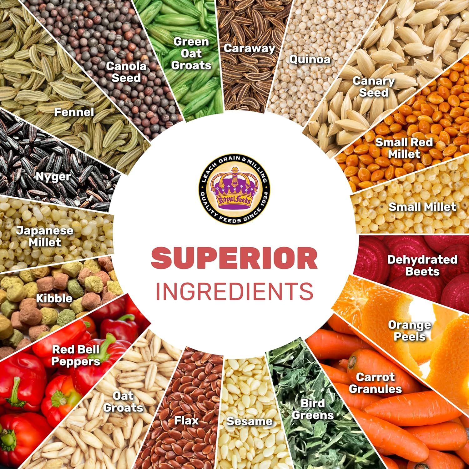 - ๐๐๐๐ ๐๐๐๐ ๐๐๐๐ ๐๐๐๐๐๐๐๐๐๐๐ โ Made with a carefully selected blend of whole grains, seeds, and dried vegetables, including quinoa, canary seed, millet, flax, and nyjer, to provide essential nutrients. A variety of textures and flavors keeps birds engaged and encourages healthy eating habits.