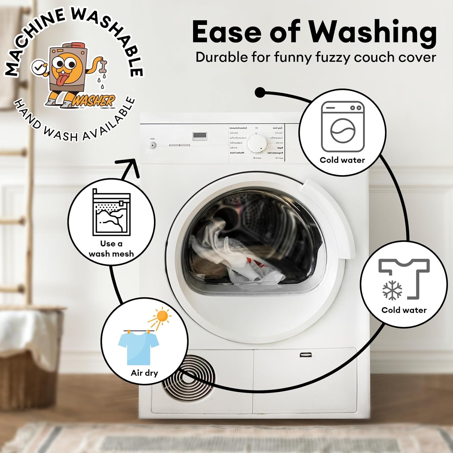 • Machine Wash for Simple Care: Make life easier with our couch cover for dogs washable, which can be easily cleaned by hand or machine. For long-lasting comfort, wash on a gentle cycle with mild detergent at a low temperature, and use a laundry bag to maintain its fluffy texture