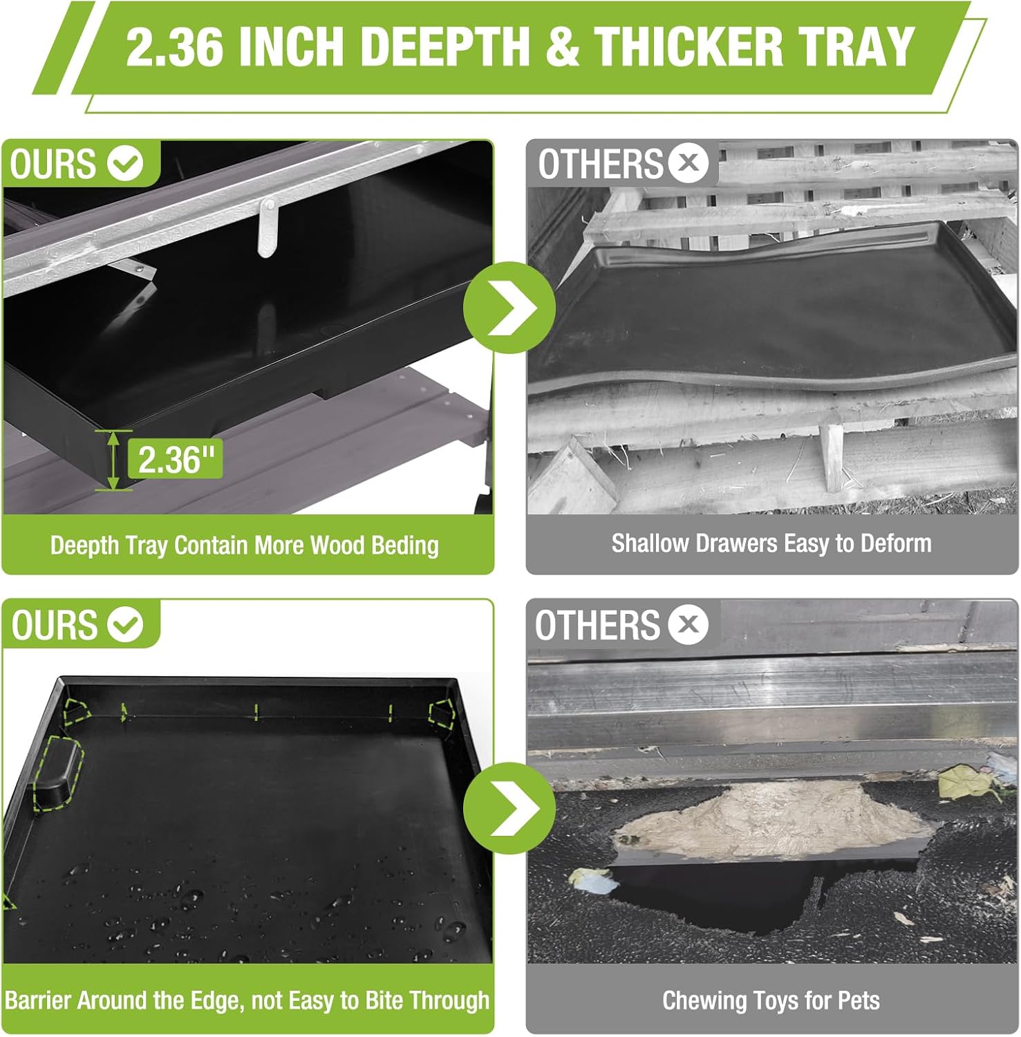 • 2.36" Deep Tray: The deepened plastic tray gives you ample space for bedding, with special baffles in the corners to prevent pets from chewing