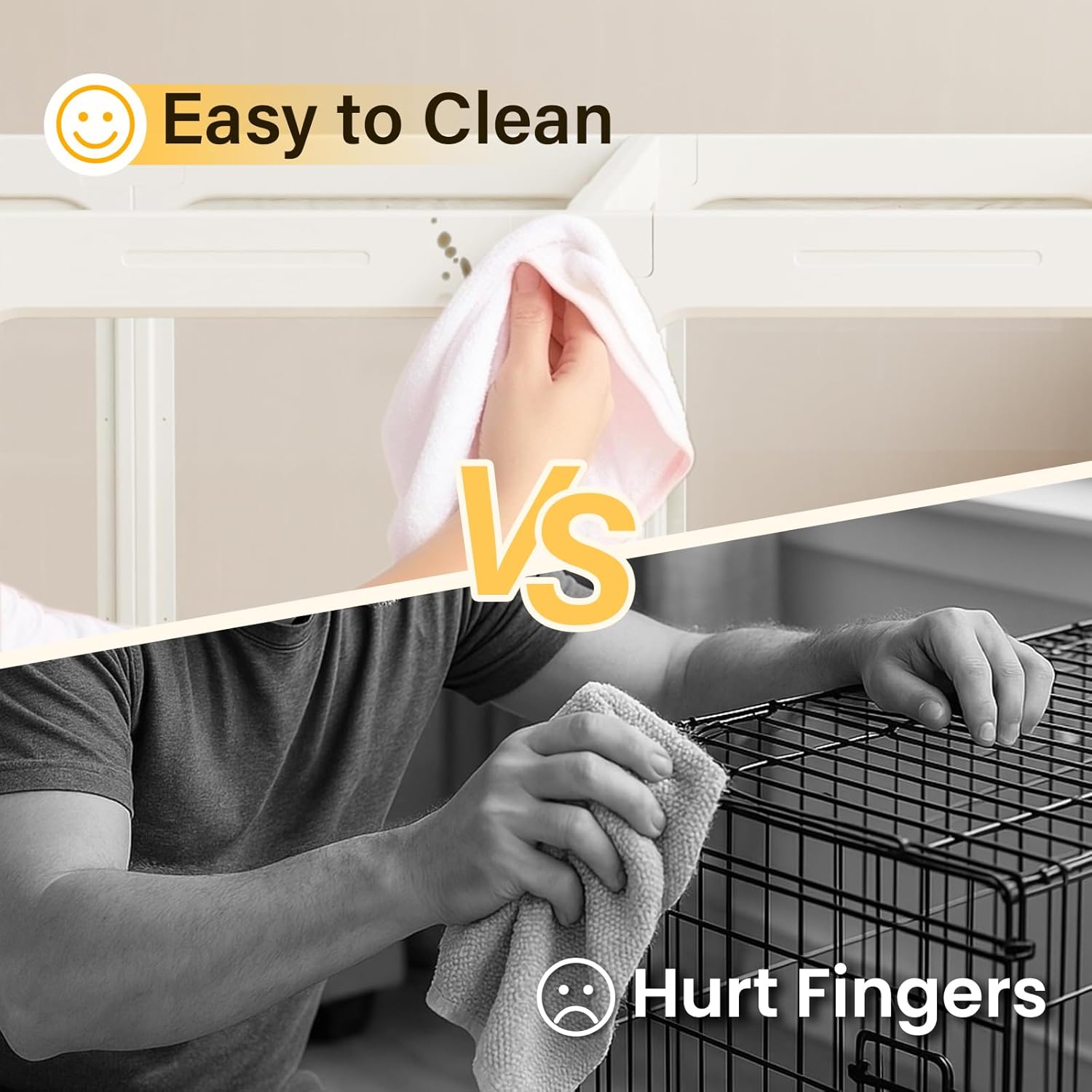 • Easy Clean & Lifetime Support: Wipe down the clear dog play pen surfaces with a damp cloth—no stains or odors linger. Backed by a lifetime warranty and 24/7 U.S.-based customer service, we guarantee a pet-friendly solution that grows with your family.