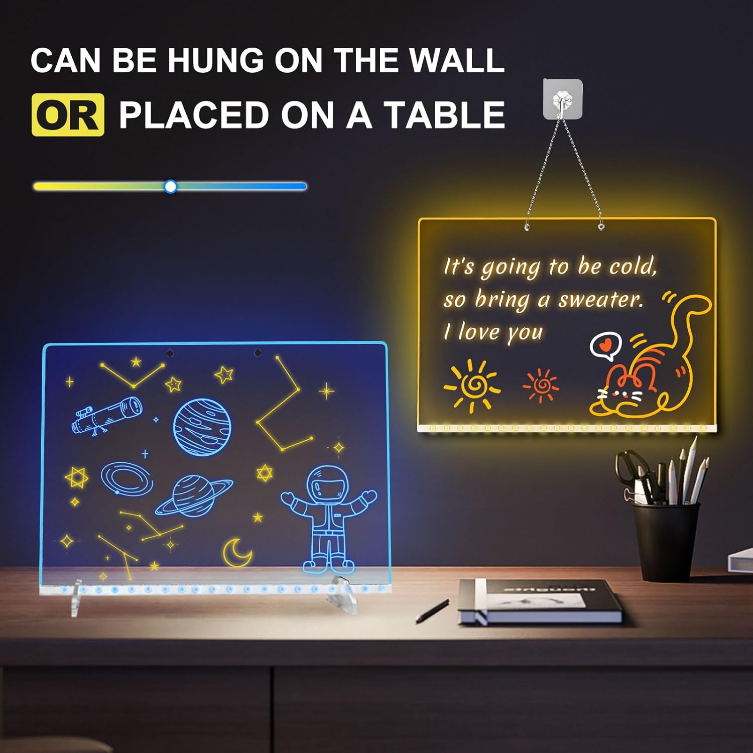 - Wide Range of Uses: The light up drawing board is not just for children. It can function as a led note board in the office for jotting down plans. In a child's bedroom, it serves as a message board, acting as a morning reminder to help the child become more independent. In the kitchen, it can be used to note cleaning tasks or dinner lists.