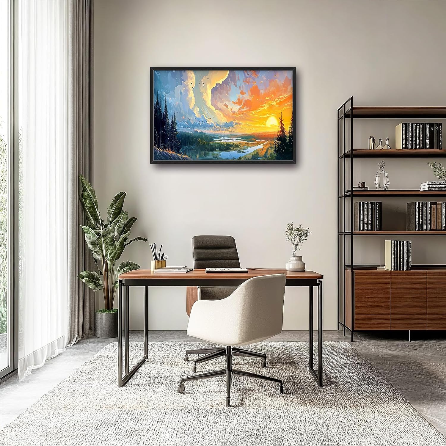 Framed Large Sunrise Wall Art for Living Room, Oversized Sunrise Wall Decor Forest Lake Landscape Canvas Print Natural Picture Home Decoration for Bedroom Living Room Office 36"x24"