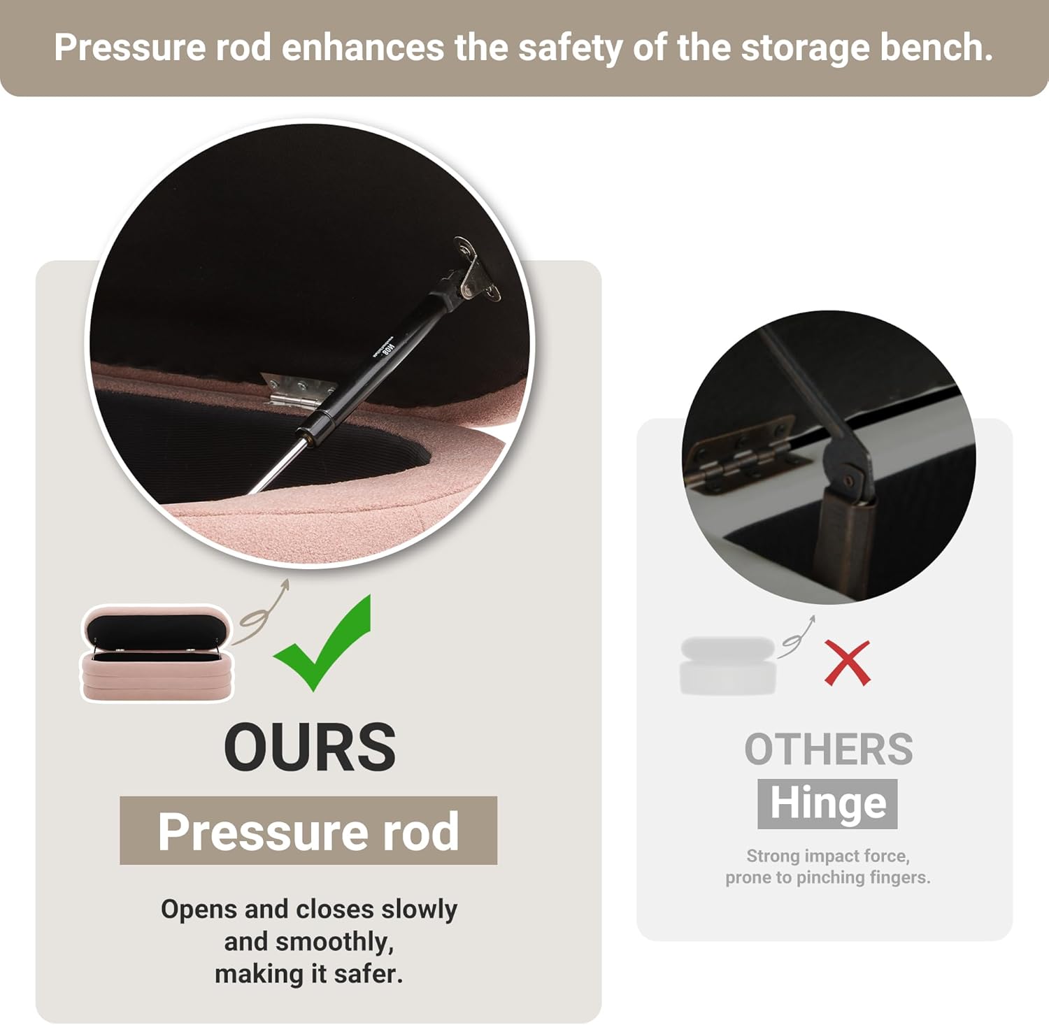 • SAFE PRESSURE BAR AND ROUNDED DESIGN: Ottoman bench features a pressure bar design that is safe and effortless to lift. The bench rounded appearance design helps to avoid children's injuries while playing, suitable for families with children.