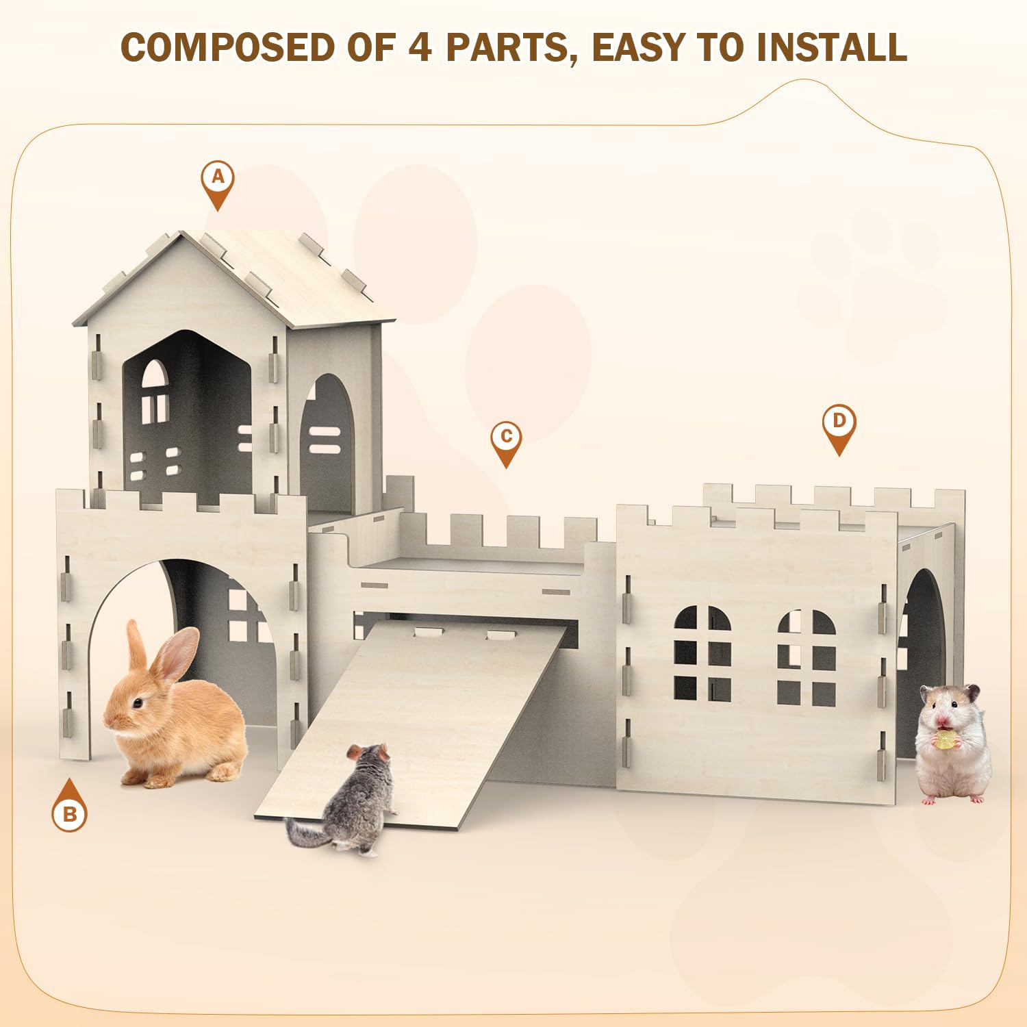 Large Bunny House and Hideouts, Wooden Dual-Layer Rabbit Castle with Stair, Rubber Band-Free Setup - Chew-Proof, Sturdy Habitat for Guinea Pig Chinchilla Ferret (Rabbit House)