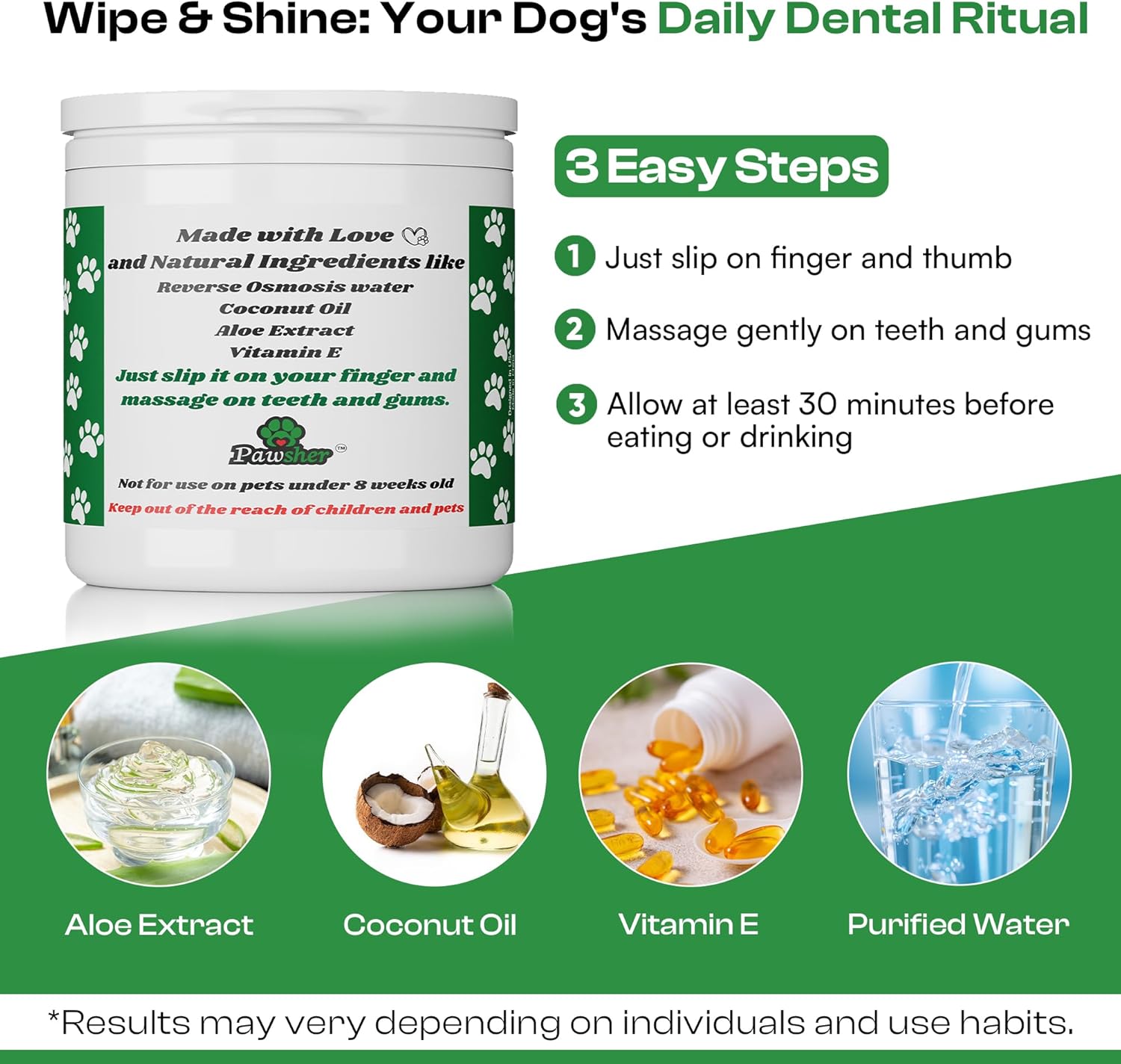 • SPARKLING SMILES, EFFORTLESS CLEAN! Gently wipe away tartar and plaque for instantly cleaner teeth, healthier gums, and fresh dog breath. No dog toothbrush and toothpaste fuss, no mess—just a happy, healthy pet.