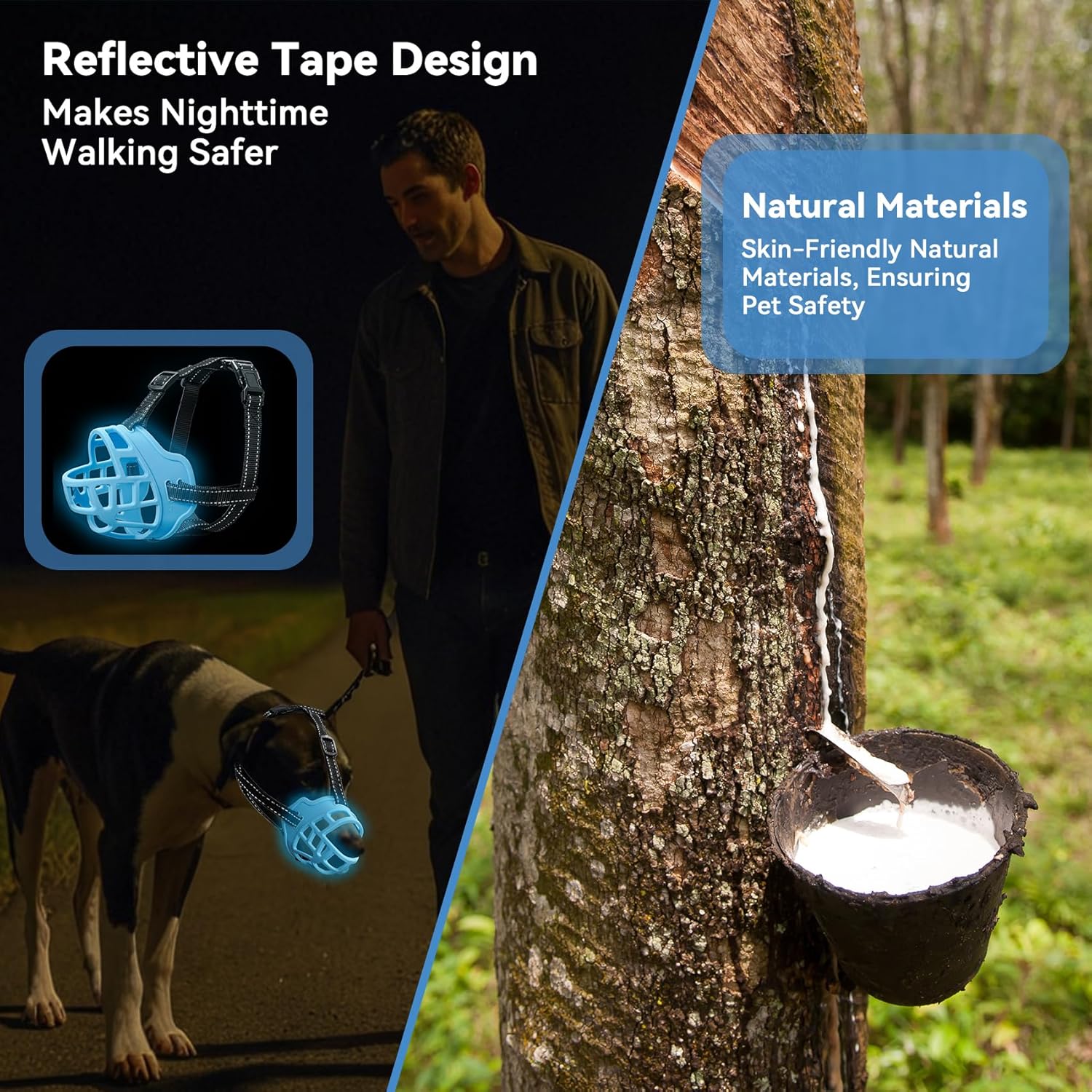 • Easy to Put on and Remove: Designed for Convenience, The Adjustable Straps on Our Dog Muzzle Allow for Quick and Secure Fitting. The Ergonomic Design Ensures a Hassle-Free Experience for Both You and Your Dog, Making it Ideal for Daily Walks, Training Sessions, Or Visits to the Vet. Reflective Strap Design Provides Night Travel Safety