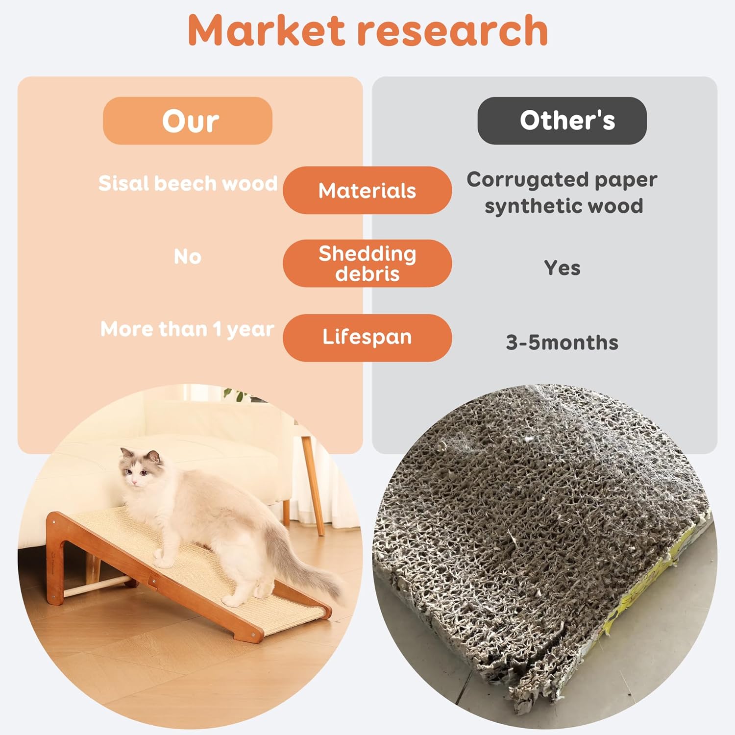 • 【Strong and durable】High-Quality beechwood base made from sturdy and durable beechwood, the L-shaped design ensures stability and prevents tipping, providing a safe scratching experience for your cat.