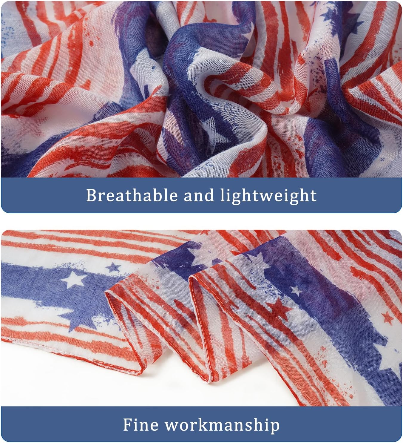 • Multipurpose:The 4th of july scarf for women can mix and match for any type of Coat,Jacket,Blouse,Sweater,Shirt and Dress. Long scarf can be hijab, knotted ,twisted,wrapped or doubled around neck, shoulders and head