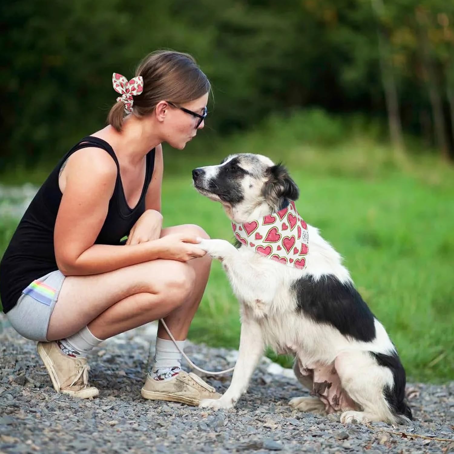 • Dog Bandanas Girl Size: 26x16.5x16.5inchs (66cm *42cm *42cm).The adjustable cute dog bandanas fit pet neck size up to 18.9inchs (48cm).You can roll the dog bibs a couple of times to fit your dog if it’s too large. Please measure your dog’s neck before buying.Pink heart scrunchies is one size fits all.