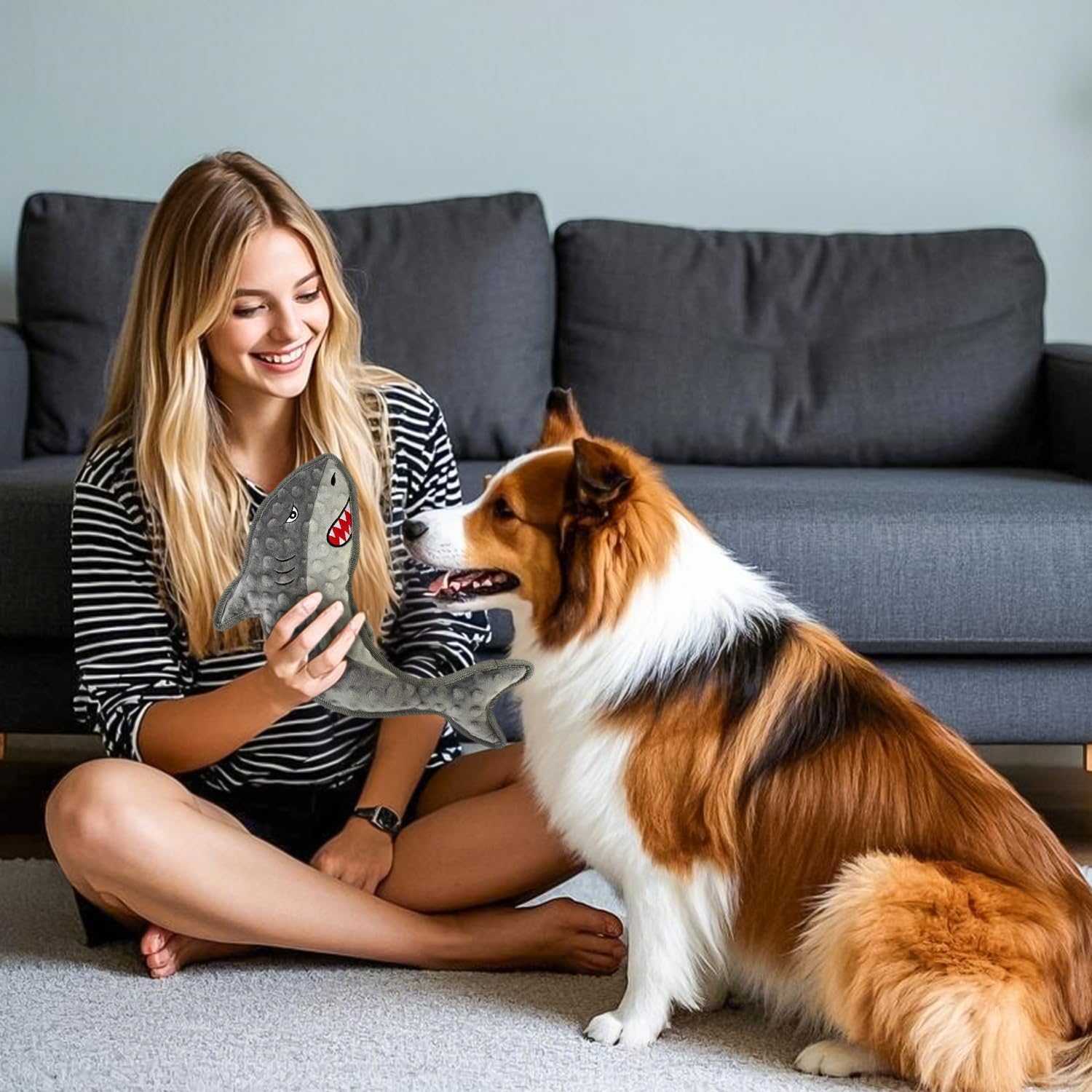 • Cute Gray Shark no stuffed dog toys:No-Stuffing, Durable Chew Toys for Puppies & Adult Dogs This Seahorse dog toy set features high-quality material with no stuffing inside, preventing messy spills when chewed. The non-toxic, pet-safe design ensures worry-free chewing. these toys suit small, medium, and large breeds, providing long-lasting fun for all dogs.