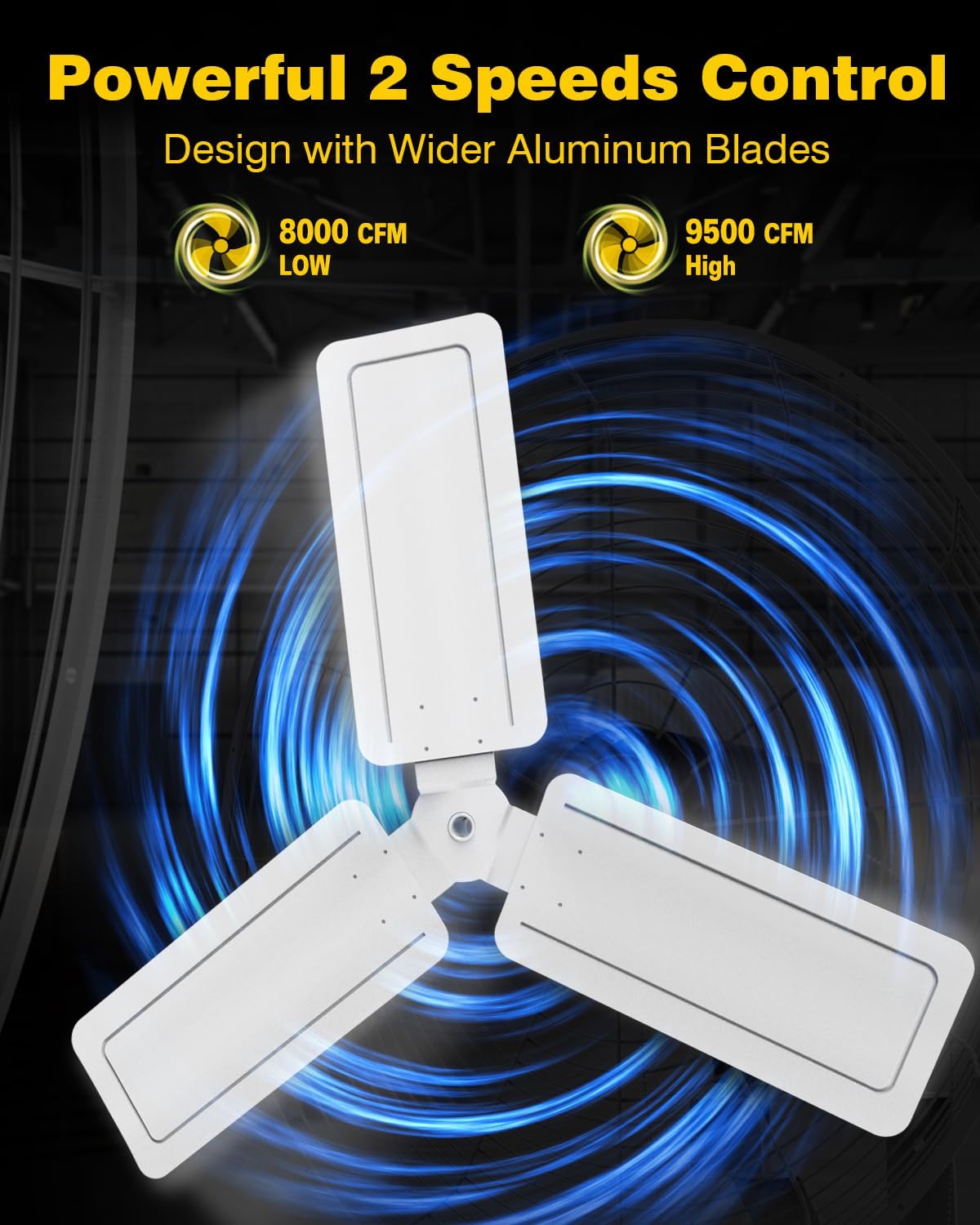 • Easy Assembling & Using: Industrial fan with a wall mounting bracket and hardwares to be easily mounted on the concrete wall. Equipes two chains to control three different speeds and oscillation.