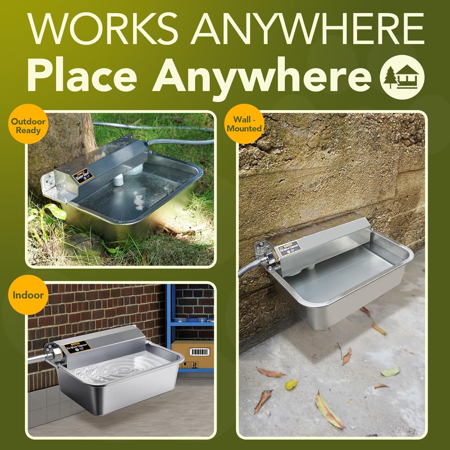 • Versatile Use: This stainless steel animal water bowl provides a steady water supply for dogs, stray cats, rabbits, poultry, livestock, and small animals. Itโ€™s ideal for use in farms, gardens, dog parks, and more