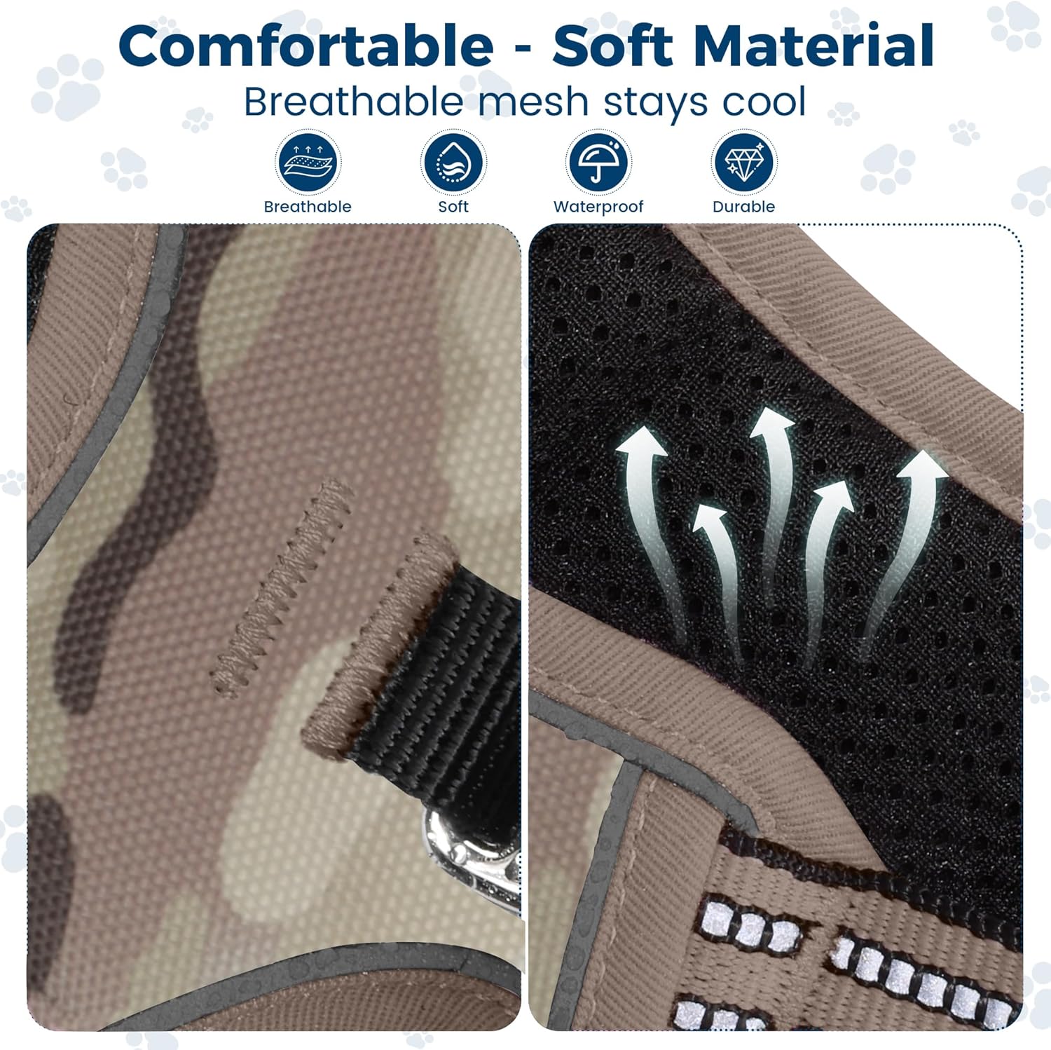 • MAXIMIZE COMFORT: 100% polyester + oxford fabric, durable and waterproof. Lightweight mesh lining and soft padding on the chest and abdomen for good load distribution and injury prevention. Protects your pet while offering maximum comfort and long-term use. Breathable air mesh allows the dog from sultry after activity.