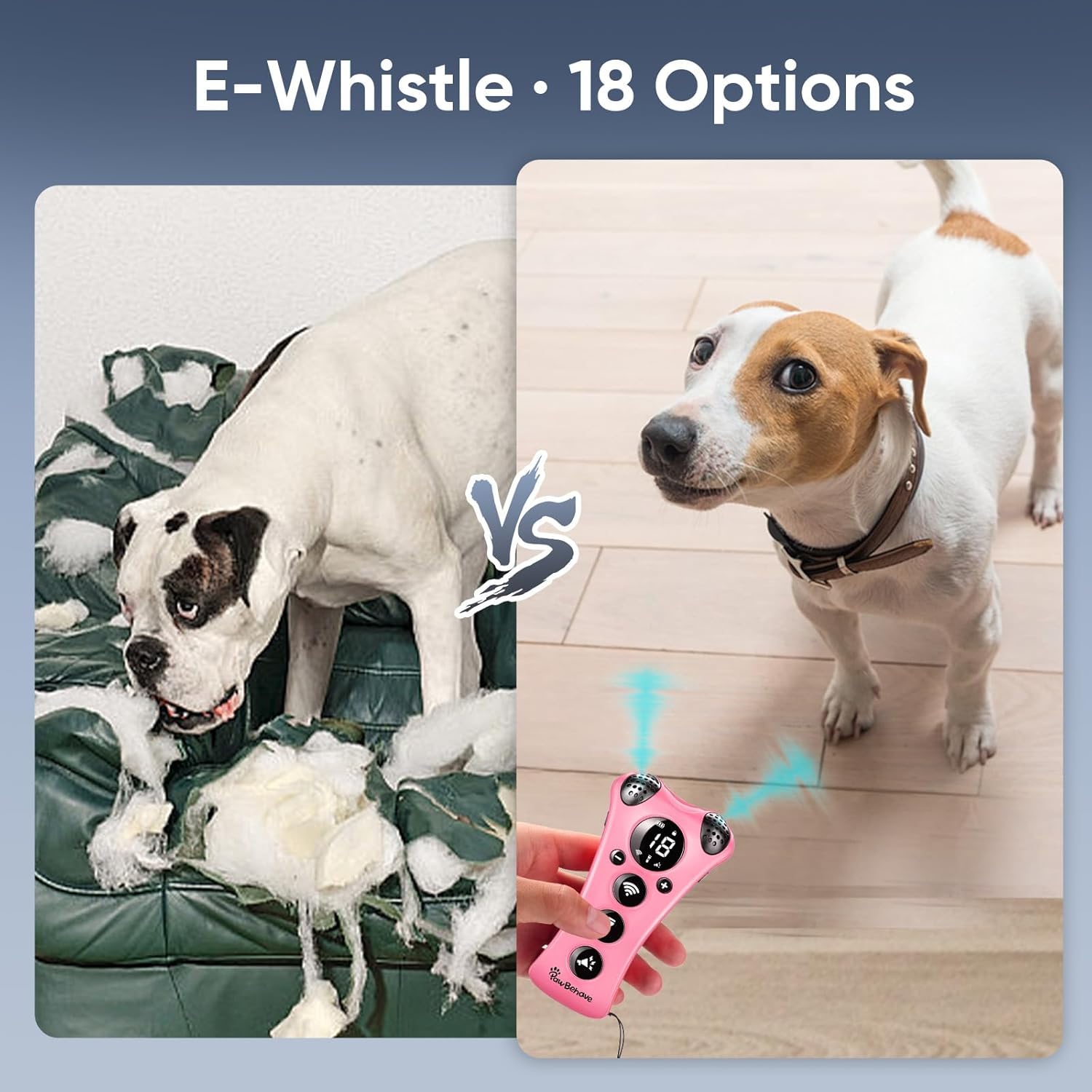 Ultrasonic Dog Bark Deterrent Device โ€“10-Level Adjustable Anti Barking Trainer with Flashlight, Strobe, E-Clicker(18 Whistle Sounds)โ€“No Shock, Collar-Free Dog Behavior Correction Devices