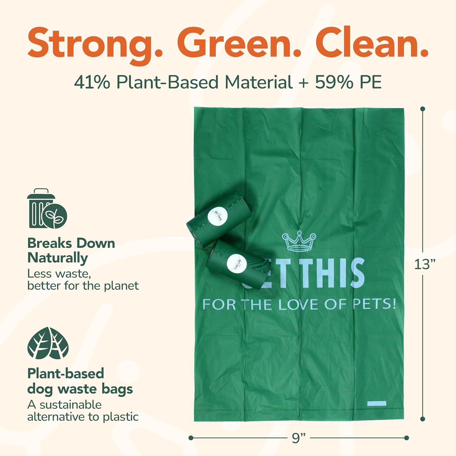 • Eco-Friendly dog bags for pet waste – Made from a compostable corn starch blend, our doggy waste bags help reduce your pup’s carbon pawprint. Perfect alternative for eco-conscious pet parents to traditional plastic poopy bags for dogs