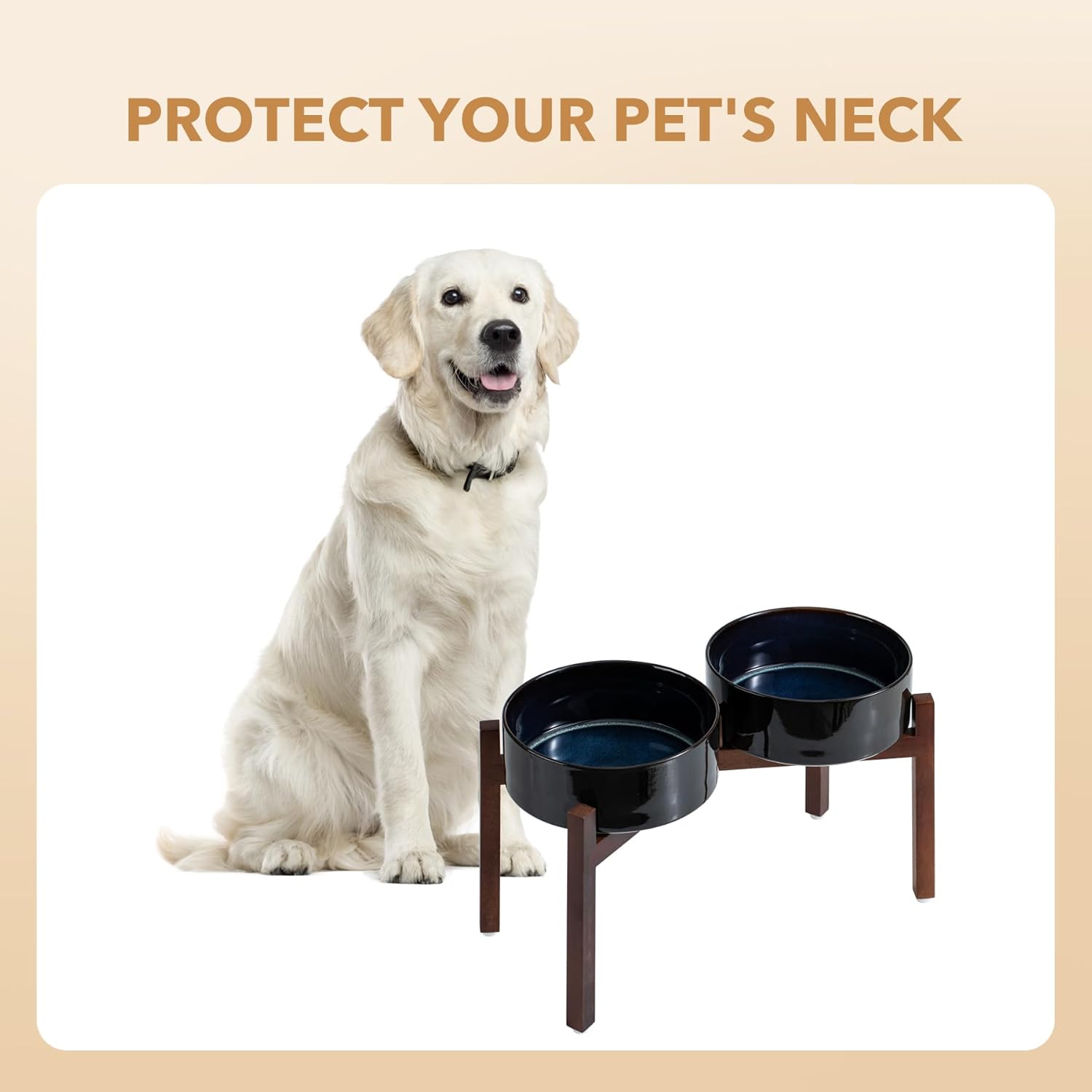 • Acacia Wood Stand: Adopting with classy acacia wood stand, this aesthetically pleasing ceramic dog bowls with stand fits perfectly with any home decor style. By flipping the stand over , you can get 2 different heights to hold the pet bowl. Let‘s elevated bowl company with your pet in different growth stages.