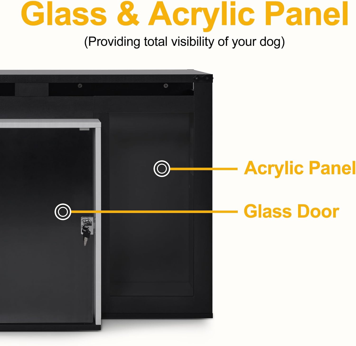 • Visual Design: This dog crate furniture features glass doors and acrylic panels, offering easy access for caring for your dog at all times