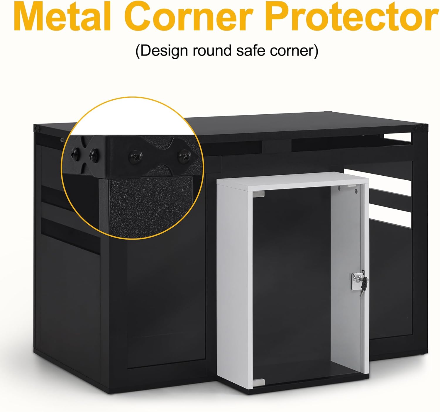 • Metal Corner Protectors: The dog crate end table features metal protectors to safeguard the corners from damage