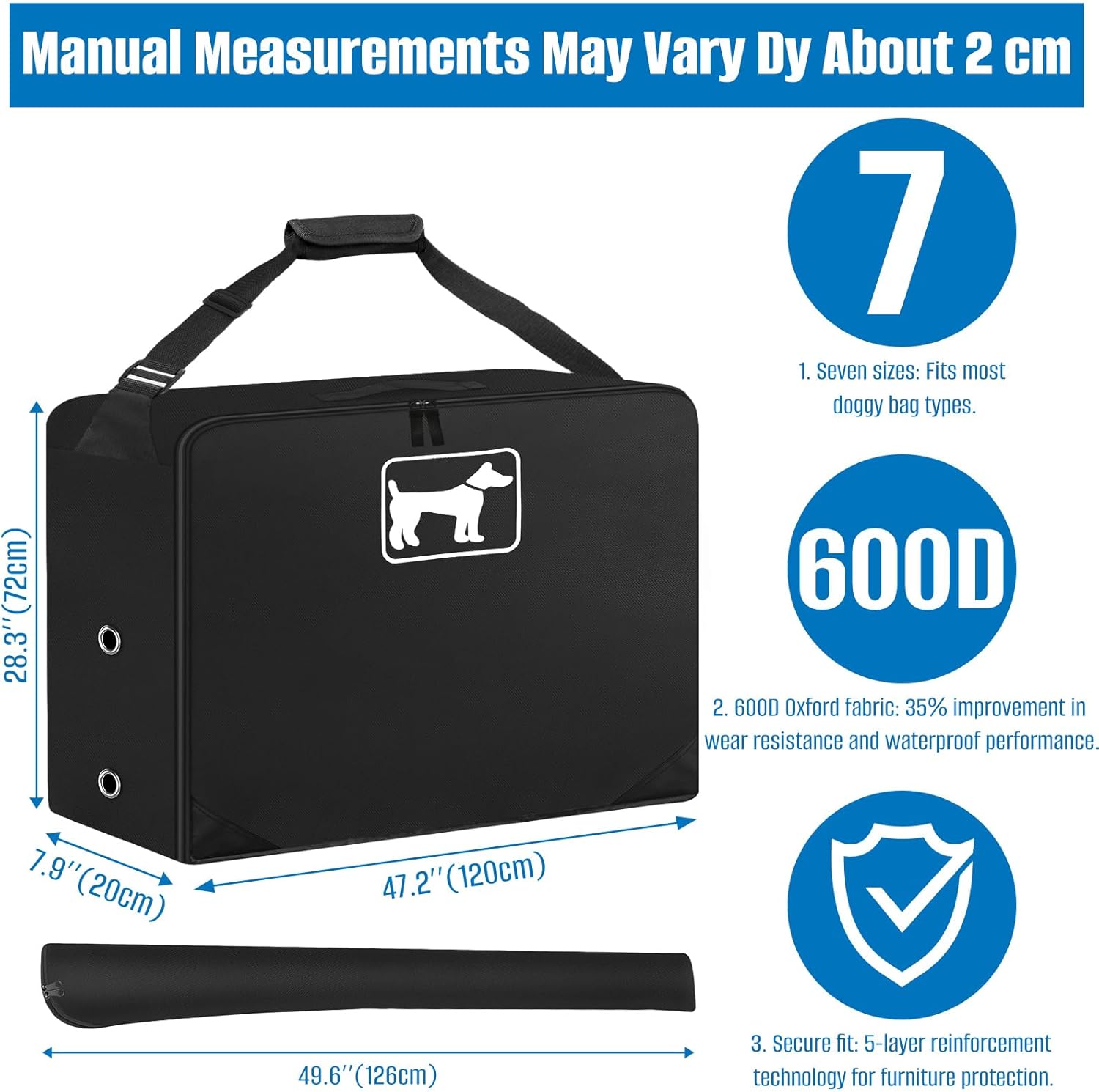 • 【Designed for Travelling Dog Playpen Storage】You will select the dog playpen storage bag is 47.3 "L x 7.9 "W x 28.3 ”H(Manual Measurements May Vary Dy About 2 Cm), helps you to organise and store dog fens, toys, picnic gear and other camping essentials efficiently, avoiding clutter.