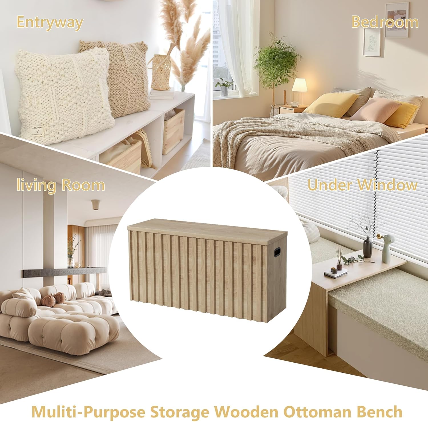 UEV Storage Bench Set of 2, 39.4" Wood Storage Trunk with 2 Safety Hinges, Sturdy Storage Chest, Fluted Storage Bench for Bedroom, Shoe Bench for Entryway, Living Room (Ivroy White)