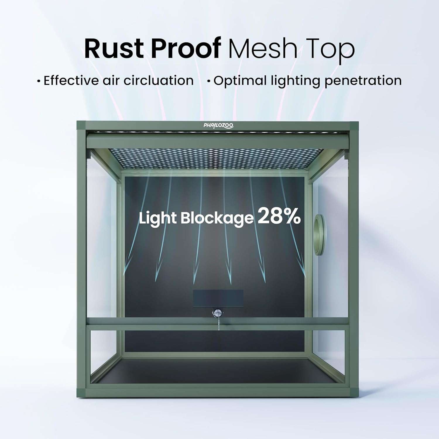 • 【Perfect for Beginners】Phailozoo 24-gallon reptile tank with single grommet measures 18'Lx18''Wx18''H. It only weighs 16.5 pounds. Easily assembled in six steps, perfect for first time reptile keepers.